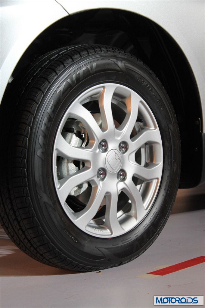 14 inch wheels are shod with 175/65 MRF ZVTs