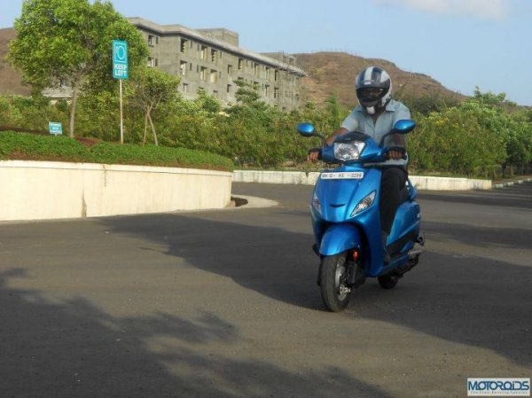 Before I begin, let me make it clear that am not a big fan of Honda Activa’s performance and the only automatic scooter that actually managed to put a smile on my face is the now defunct Kinetic Blaze. The Maestro shares the 110cc, 4-stroke engine that produces a power of 8.2 PS with the Honda scooters. The scooter performs quite well and hardly feels under powered, at least, in the initial speed range. It reaches 60 kmph in a brisk manner but anything above that is a bit of an effort. The best thing to say about the performance from this scooter is that it is good for city speeds and quick getaways from traffic lights. Anything above 60kmph takes a fair bit of time to come and it took me a lot of patience to touch 75kmph on the speedo. Power delivery is quite linear till 60 kmph and the engine is very refined. I will say that the engine lacks absolute top end grunt, but has a good low and mid range punch. The Maestro should return about 45-48 kmpl in regular traffic conditions and that means the scooter should be good for about 250 kms on a single tank of petrol.
