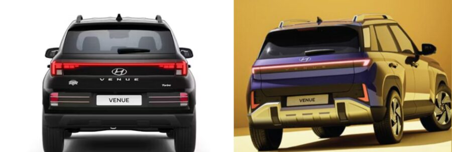 - At the back, the tail-lamps are connected, and the VENUE lettering sits on a black strip. There’s also a new tailgate garnish reminiscent of the Alcazar, a faux skid plate, and a redesigned rear bumper. Even the bumper has stronger lines.