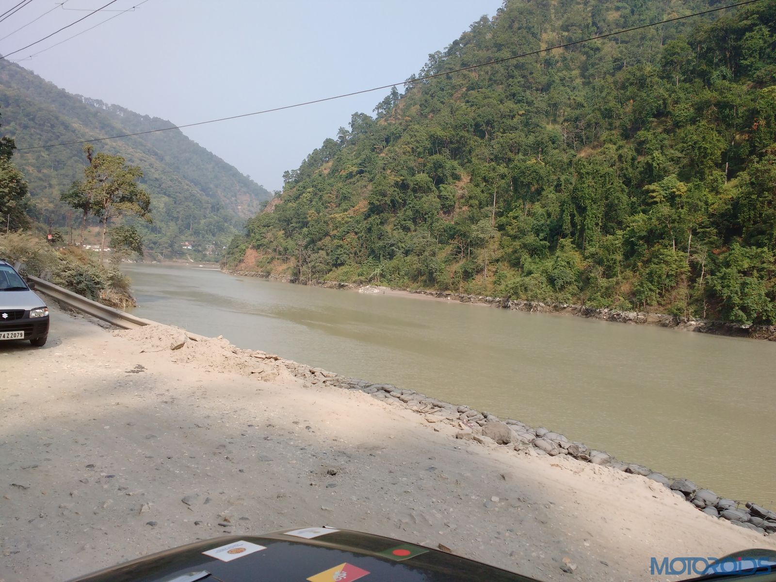 Settled in a moving queue, we were soon trudging along the Teesta, on a narrow, sort of busy two lane road.