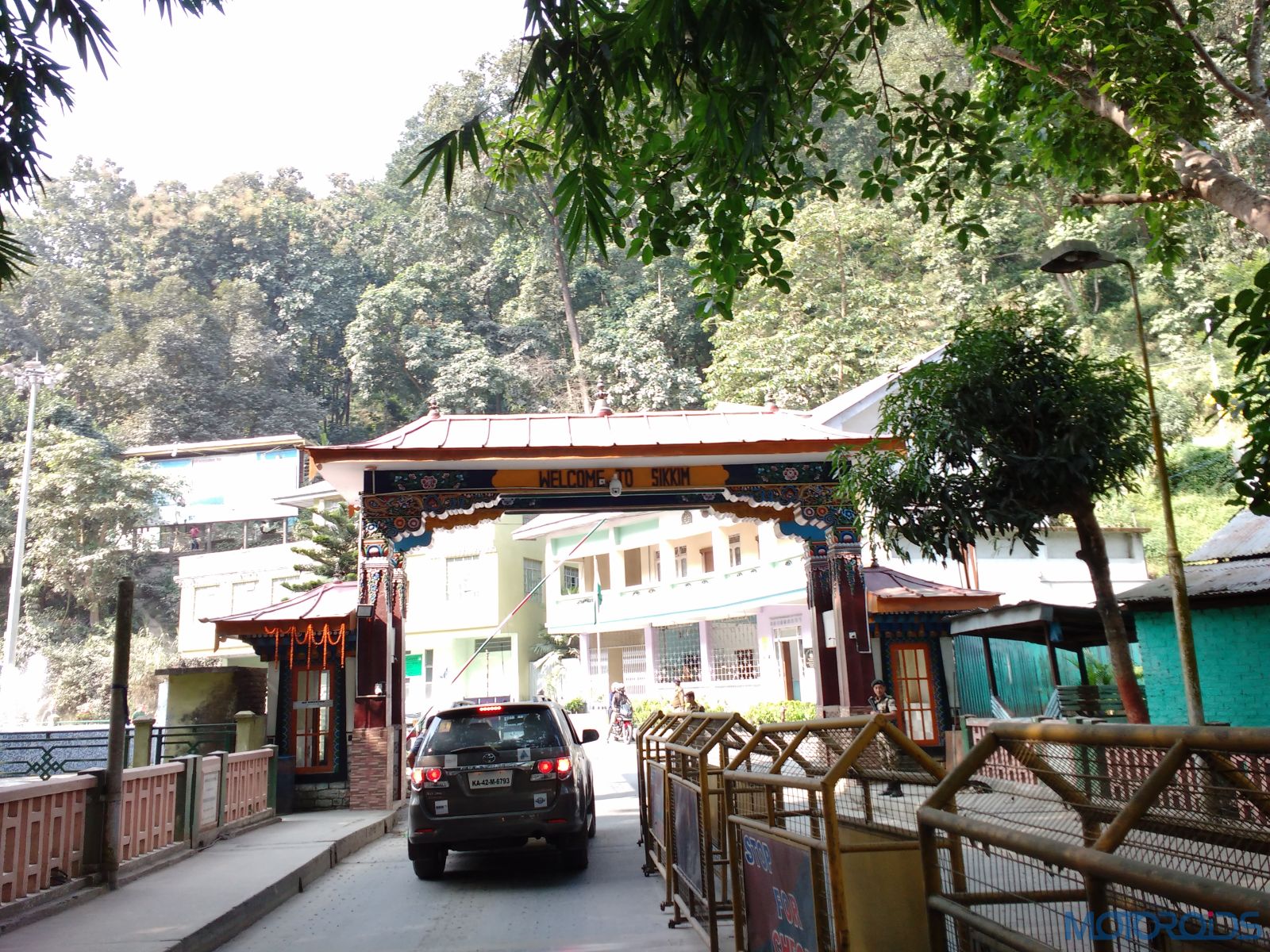 Driving gingerly in the twisties, we soon arrived at the state border of Sikkim.