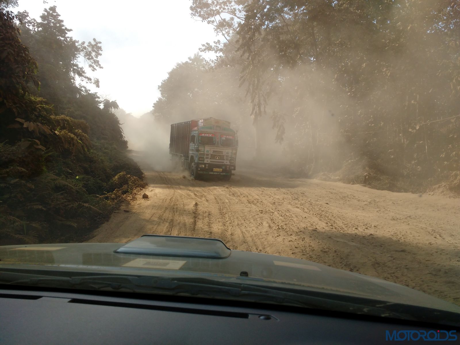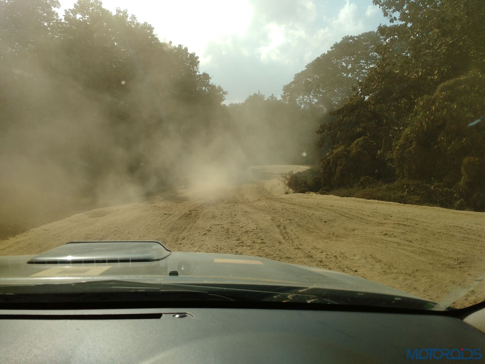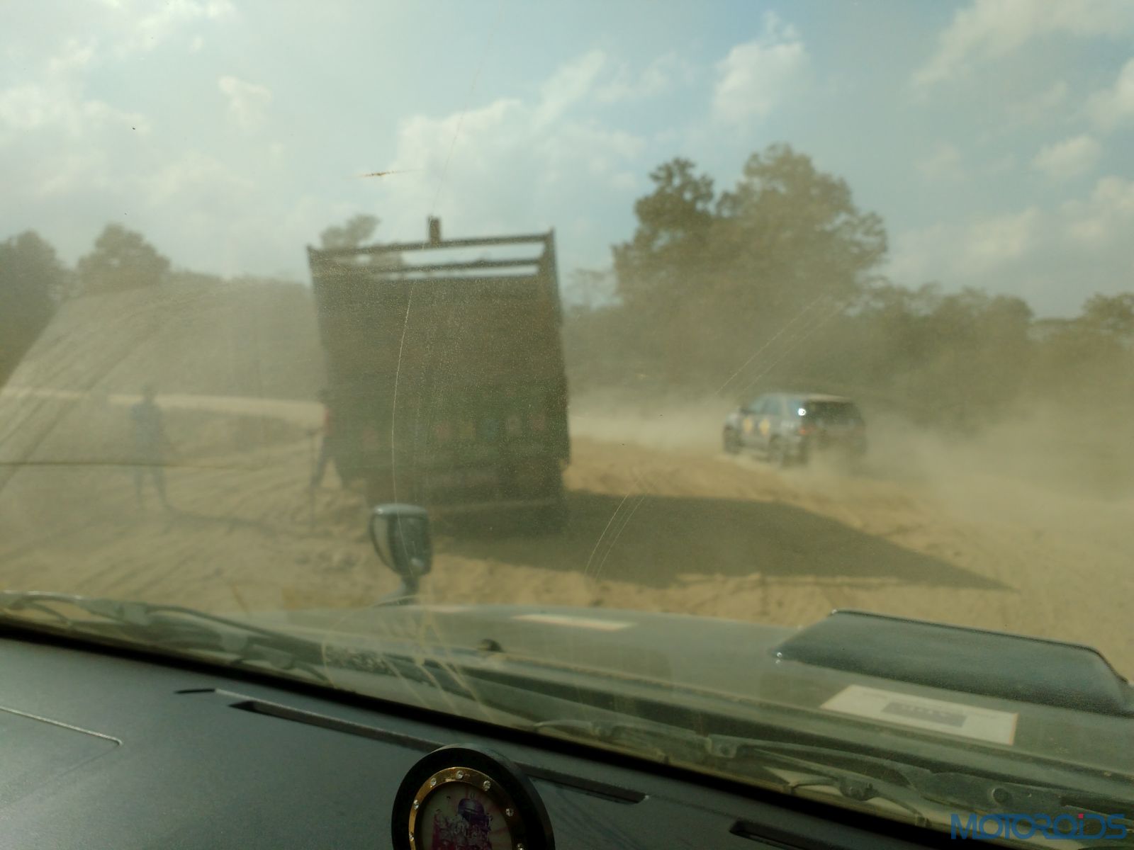 With not even an inch of tarmac throughout, except for the last few kilometers in the journey, the car’s suspension bottomed out a million times, thanks to almost a quintal of weight in the boot and the air filter was probably blurting abuses all throughout.