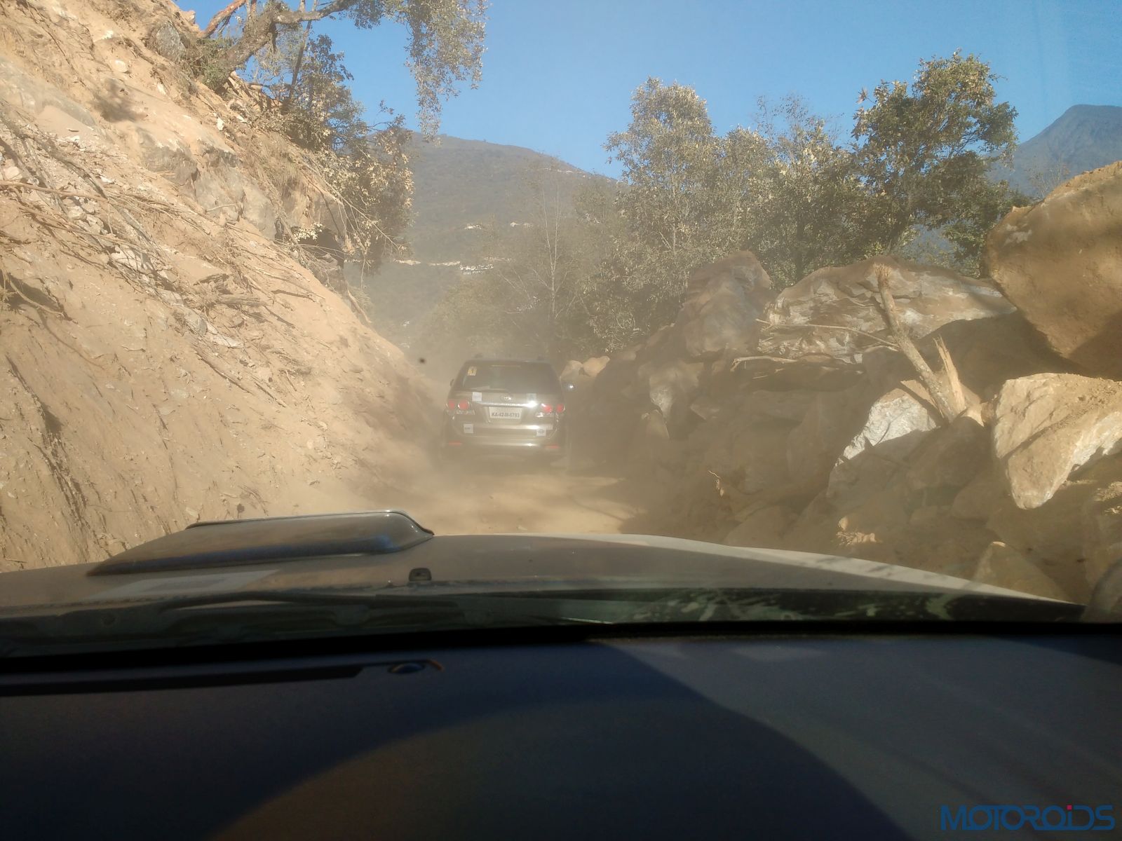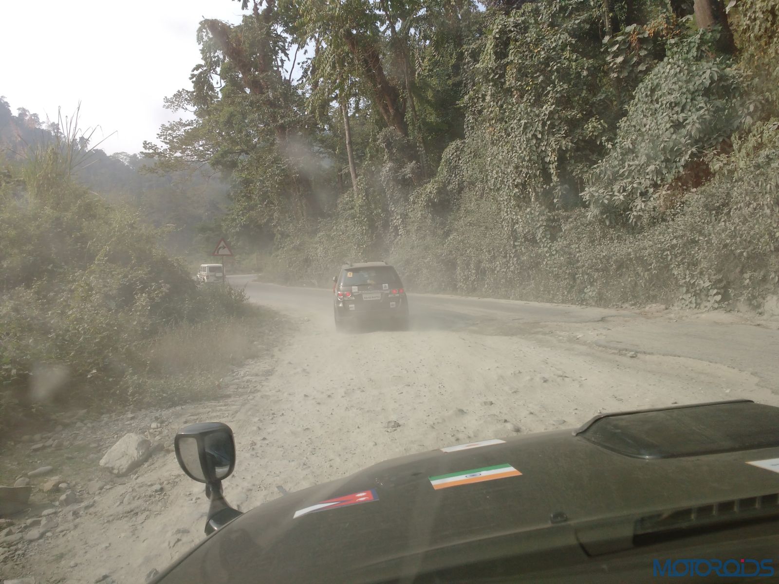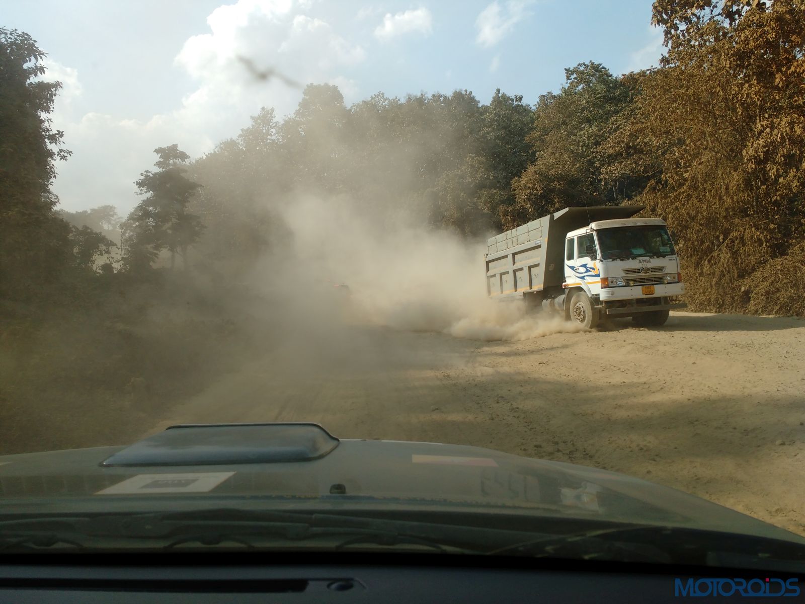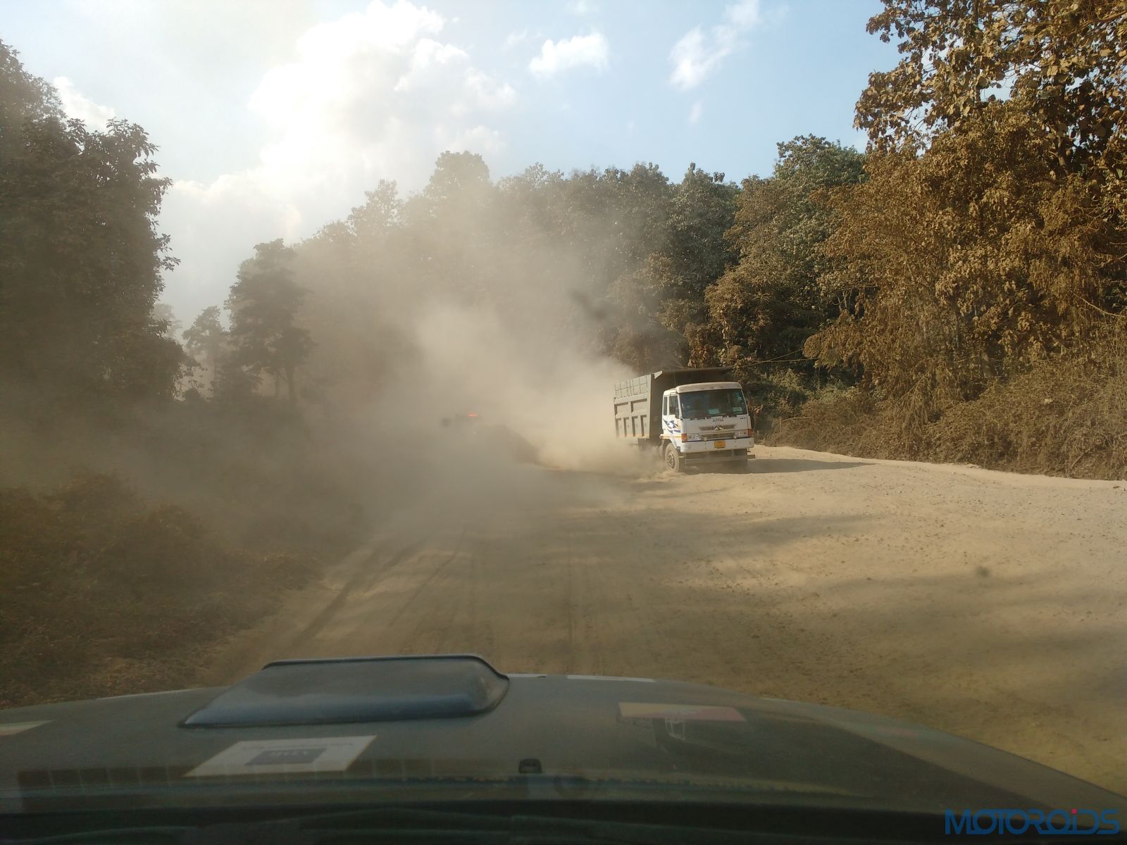 With not even an inch of tarmac throughout, except for the last few kilometers in the journey, the car’s suspension bottomed out a million times, thanks to almost a quintal of weight in the boot and the air filter was probably blurting abuses all throughout.