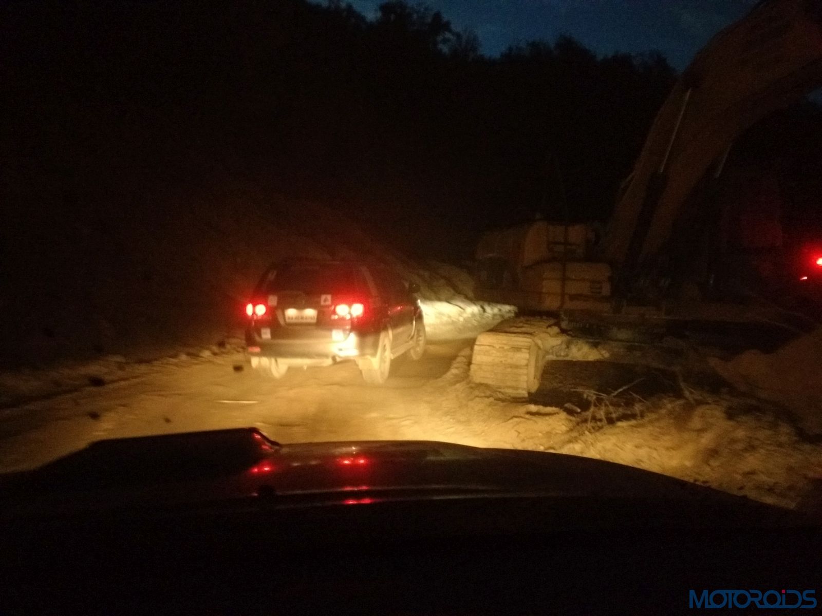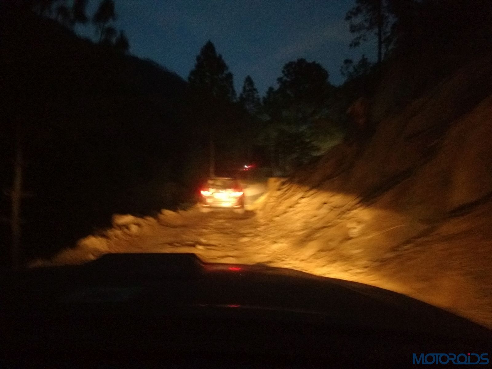As daylight started fading and we hit a dusty patch in the night. Reaching our destination, we headed out to fuel up the cars and retired to our rooms after a hearty meal.