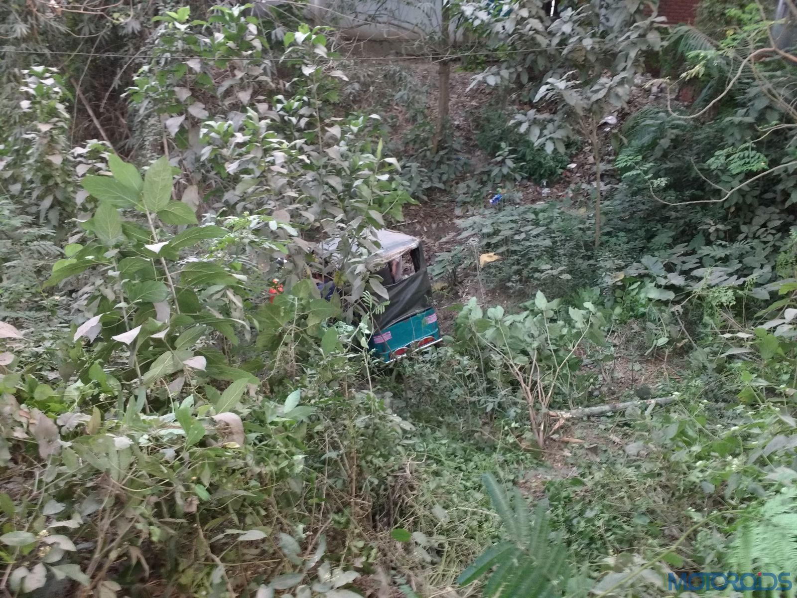 Everything seemed alright, when while taking a U-turn, the driver managed to go off the road and plummeted the damn thing in a 20 feet deep pit. Since i was sitting next to him in the front seat, it was one of the most silliest accidents that i witnessed at slow speed, as we entered the bushes, flattened plants and finally came to rest, with the three wheeler over my body, my thigh stuck beneath. Thankfully, that thing was light weight and quick action by my friends ensured i got out with a couple bruises and a sore thigh.