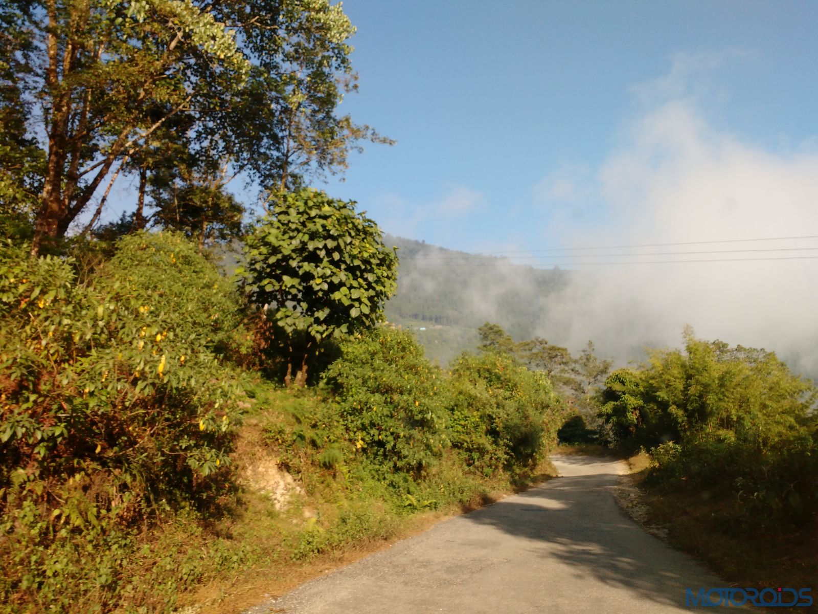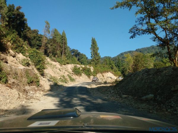 Once past Kalimpong, we were in pine tree territory as we climbed higher and the tarmac was fast disappearing.
