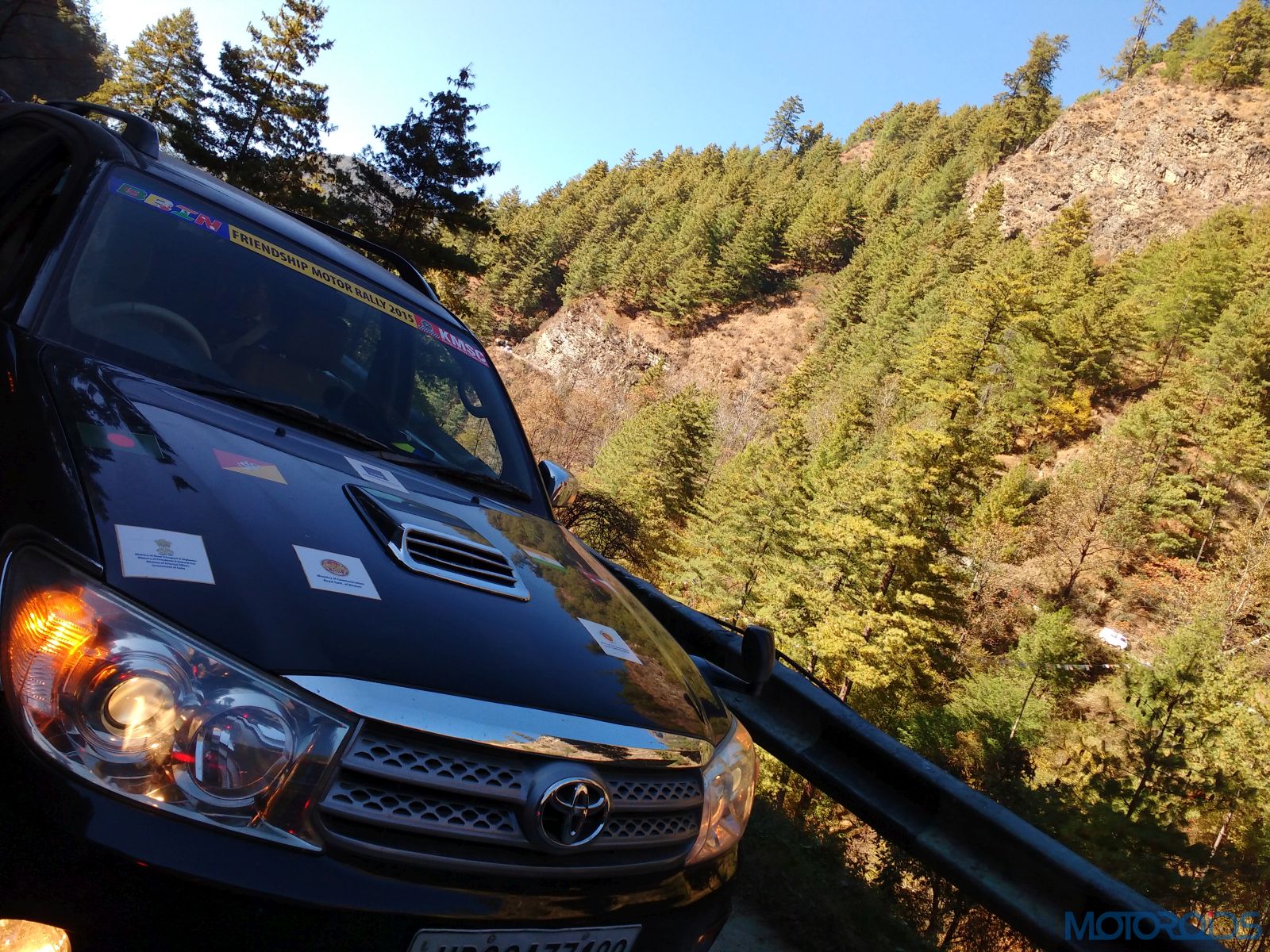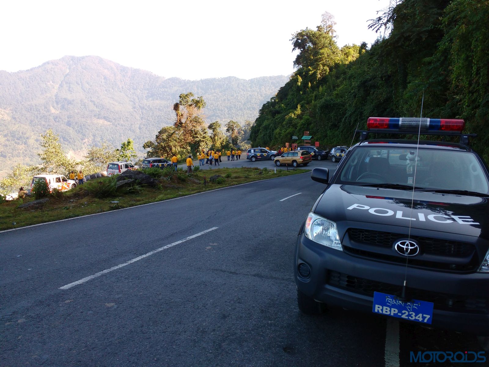 Flagged off from the gate that borders India and Bhutan, we were being piloted by crsiply dressed smart looking cops in their Toyota Hilux pickup.