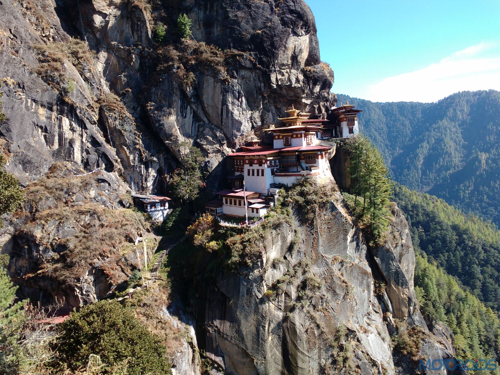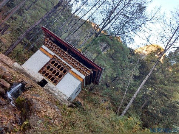 While on our way there, we watched an aircraft take off like a spaceship, avoiding cliffs as it cheated gravity at the Paro airport. A few kilometers later, we parked the Thar at the base and looked up to see the monastery, perched high up on a steep rock that tore through the clouds.
