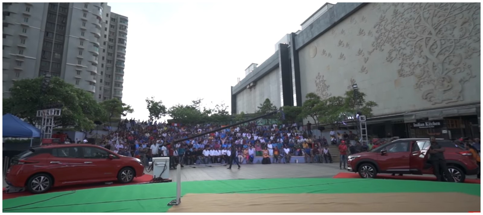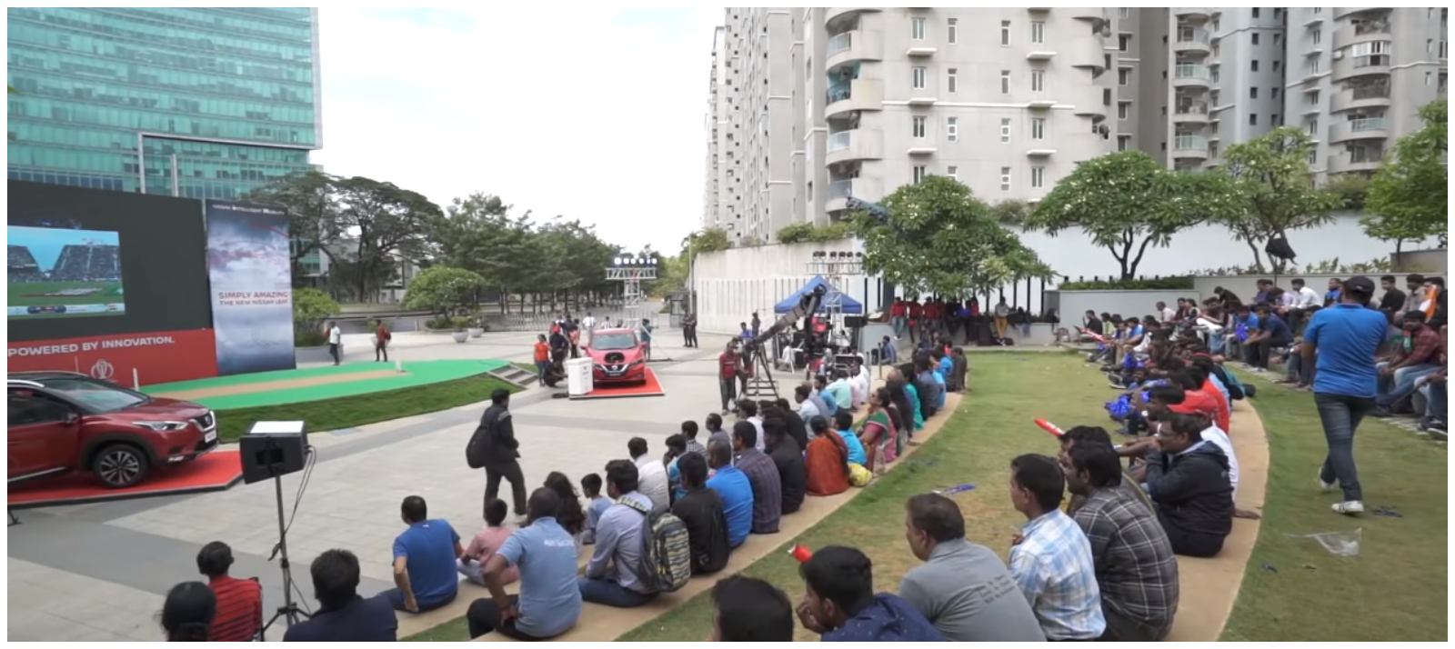 Despite heavy rains and match delay, Nissan’s World Cup screening in Bangalore turned out to be a huge success. The event received a large footfall and was attended by many cricket fans and enthusiasts who were interested not only in the match but were also fascinated by Nissan’s flamboyant duo of the Leaf EV and Kicks SUV. The screening was completely powered by Nissan’s all-electric vehicle, the Leaf. The Leaf used its smart V2H or Vehicle to Home system to provide the screen with enough power to run for over 8 hours, throughout the India vs New Zealand semi-final match.