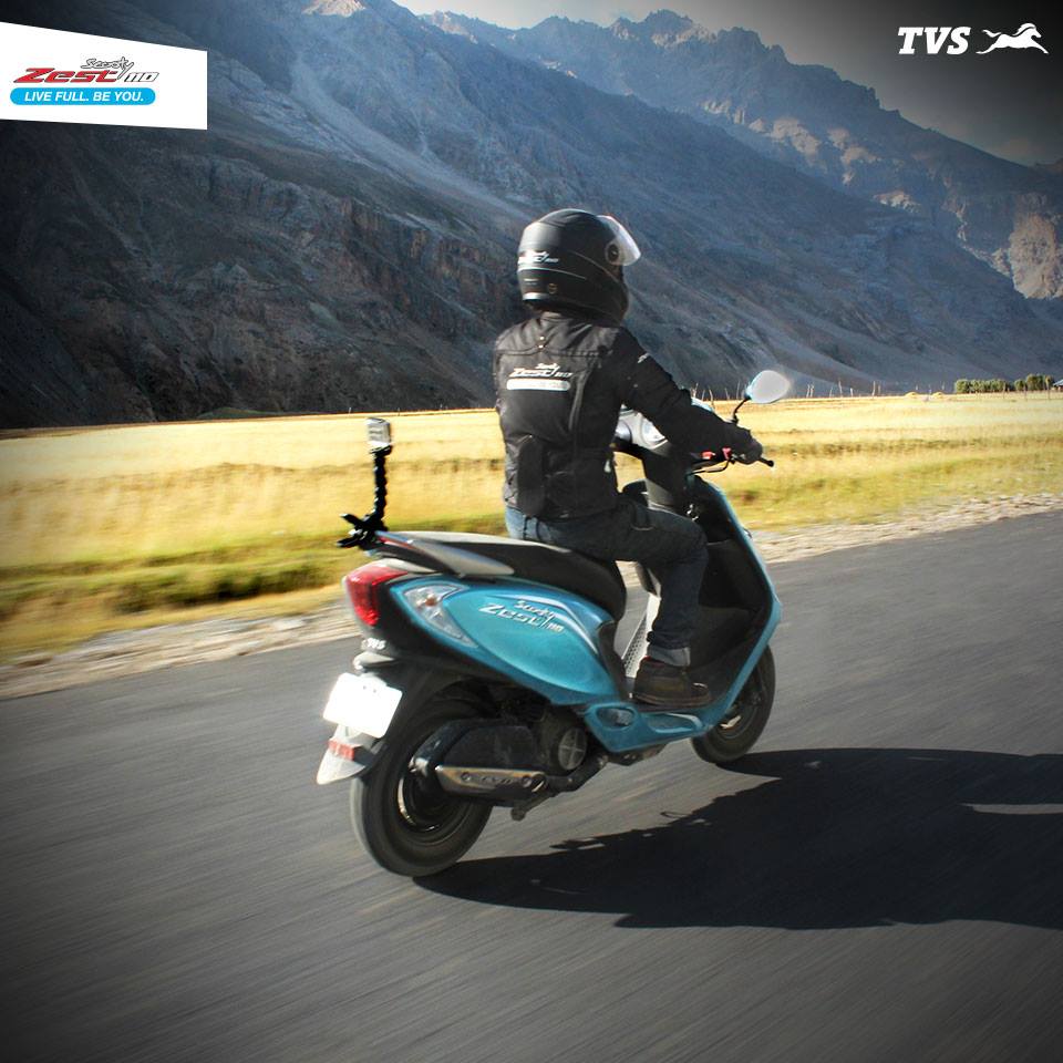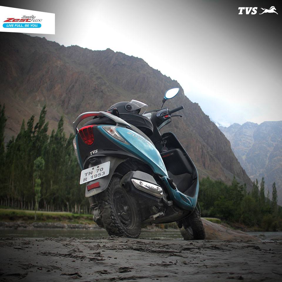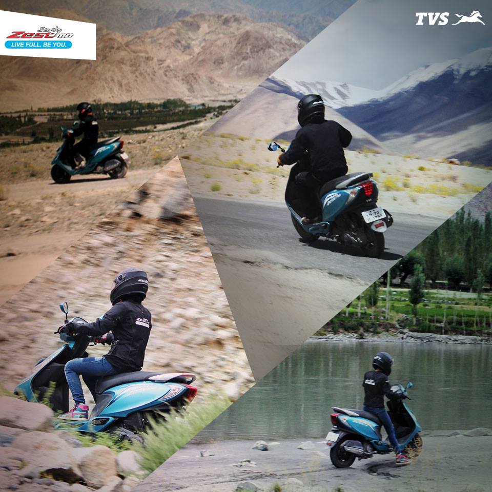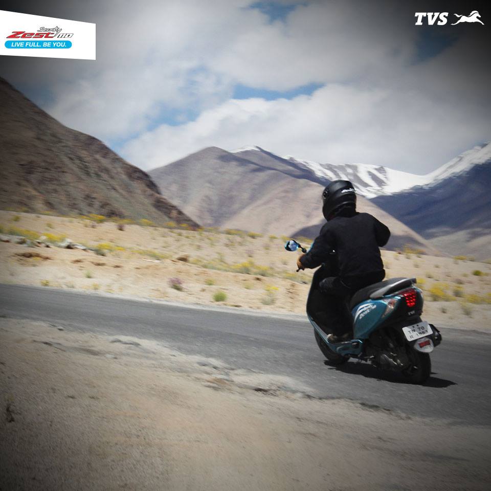Thousands of miles away from the busy city life, is a land of tranquil and peace which every serious wanderer, car/bike guy (or not), craves to explore at least once in his / her lifetime. The land of high mountains, a skyful of stars and monasteries that warp you back in time – Leh and Ladakh – mostly sees brawny machines with unshaven, masculine men astride, thumping their way to Khardung La, the highest motorable road in the world. However, this time, these unforgiving terrains, illuminated by the most pleasant sunrays, saw an unusual visitor, cruising her way in an epic and adventure filled journey on the most unlikely machine– a TVS Scooty Zest 110.