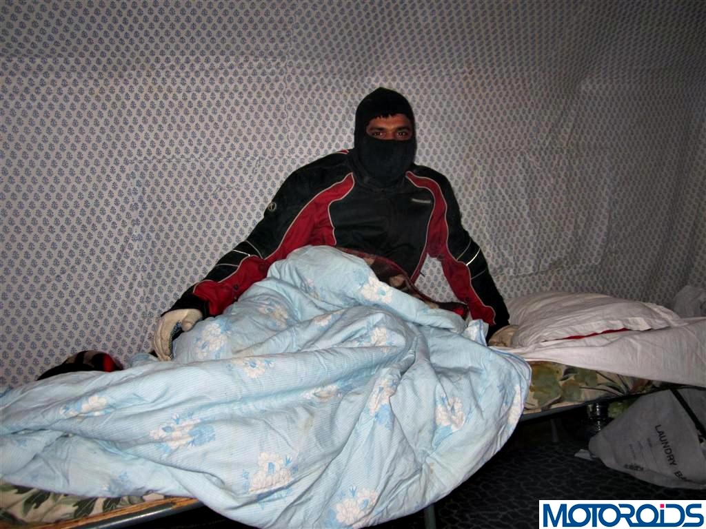 Luggage was off-loaded, tents were allotted with tea and biscuits ready to refresh our tired bodies. “God, this is lavish!” I said to myself. While the other riders took off to the lake, I decided to compensate for the earlier night’s loss of sleep and kept the lake visit for next morning. By the time I got up dinner was ready and it was so cold that I had to keep the riding jacket on over layers of clothes and thermals- and I went to bed wearing it buried under two layers of blankets marking the end of day 3.