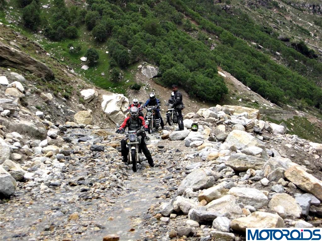 The time lost meant more melting of snow and the water crossings would be deeper and even more treacherous to pass and it was evident with a few people losing balance and tipping over. There was no road, it was just mud and rocks to hop over, and the Thunderbird- specially the front suspension was eating up those obstacles with ease. The only thing needed was to watch my balance. Moving forward we have another landslide and another hour wasted.