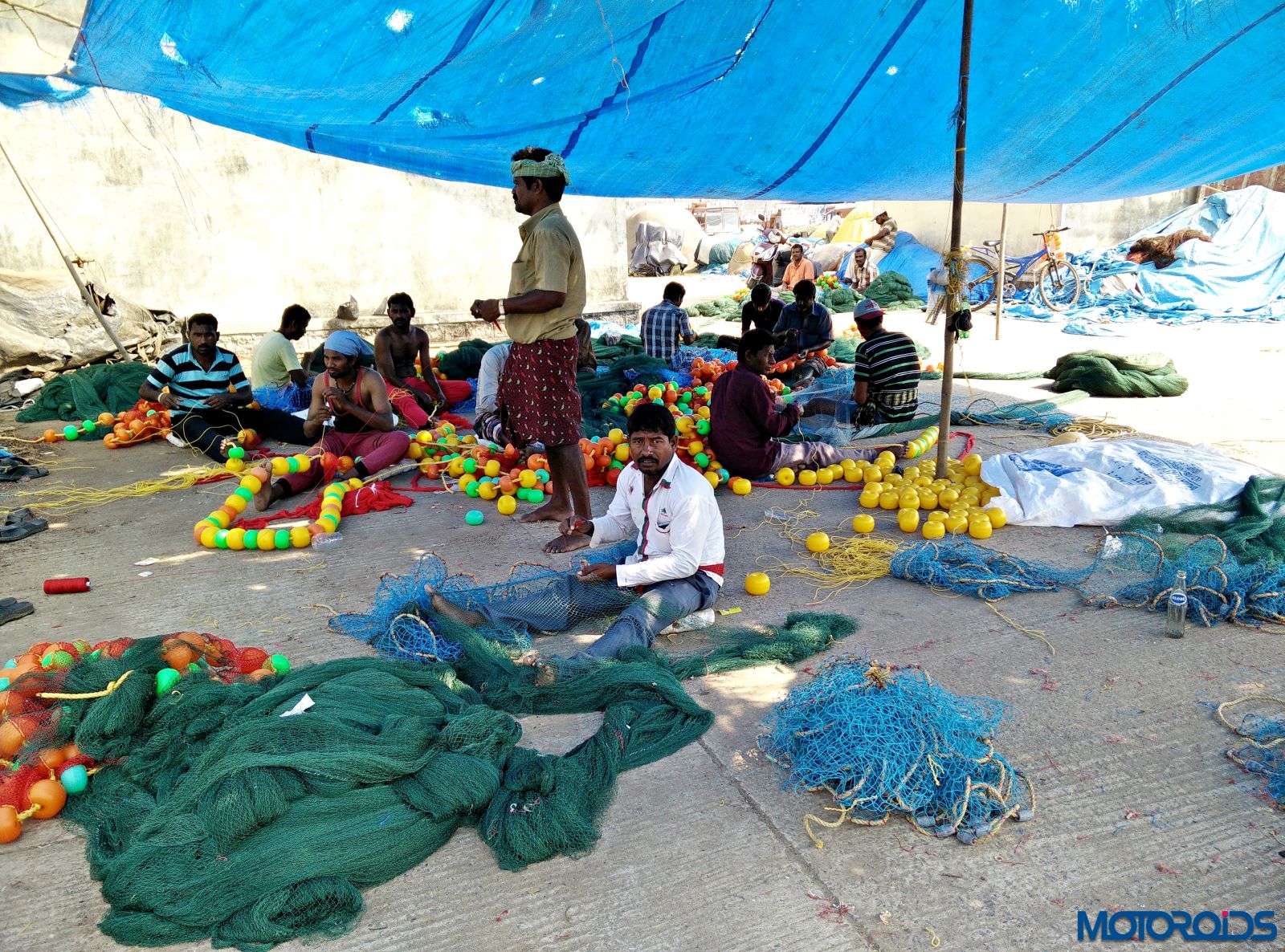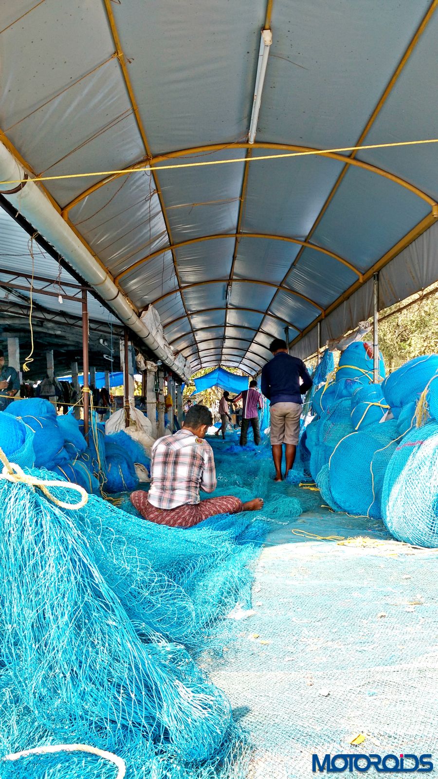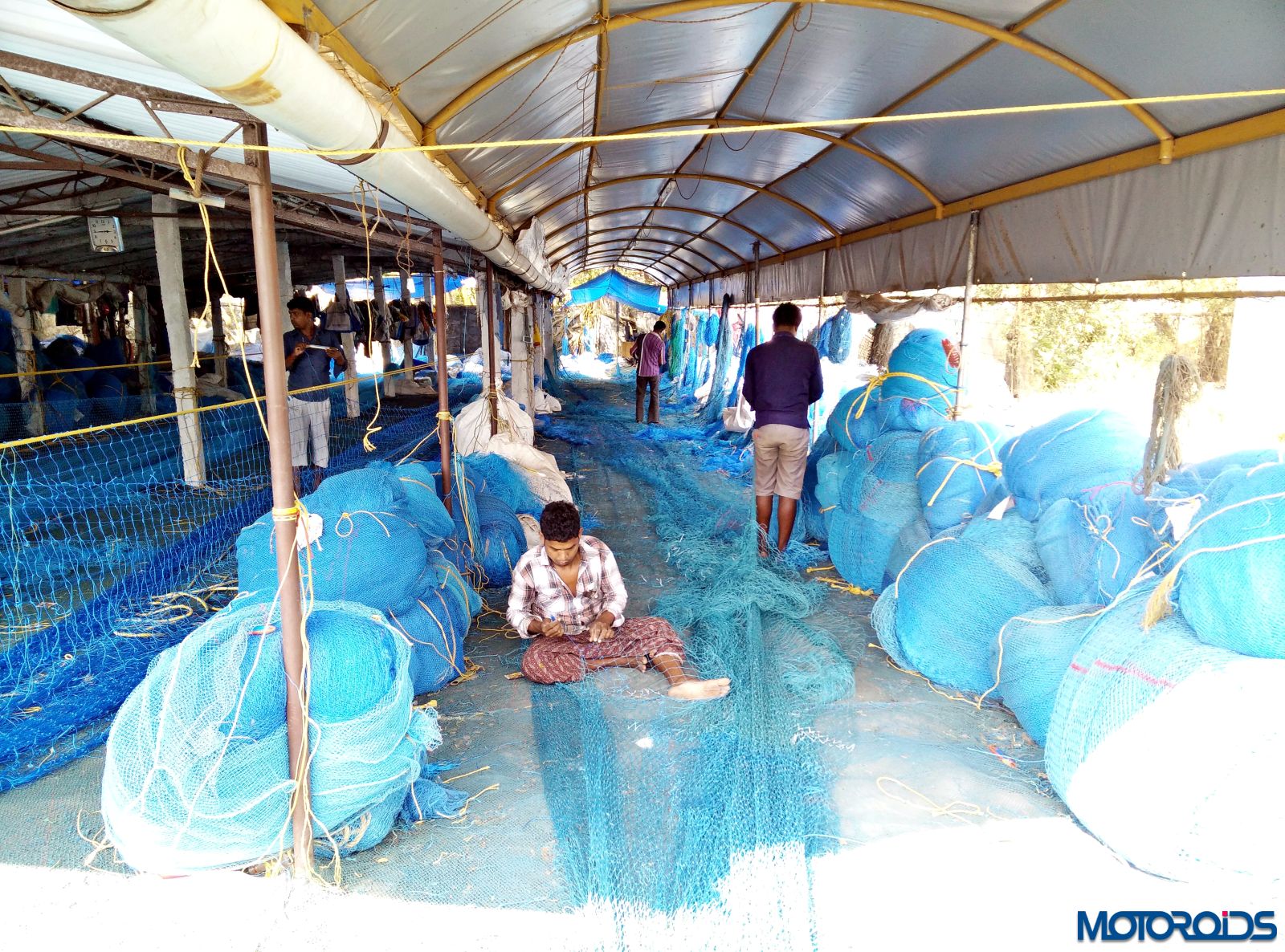 Fish net manufacturing is big here. You’ll see workers making different varieties of the equipment all day long. This one is the floating type
