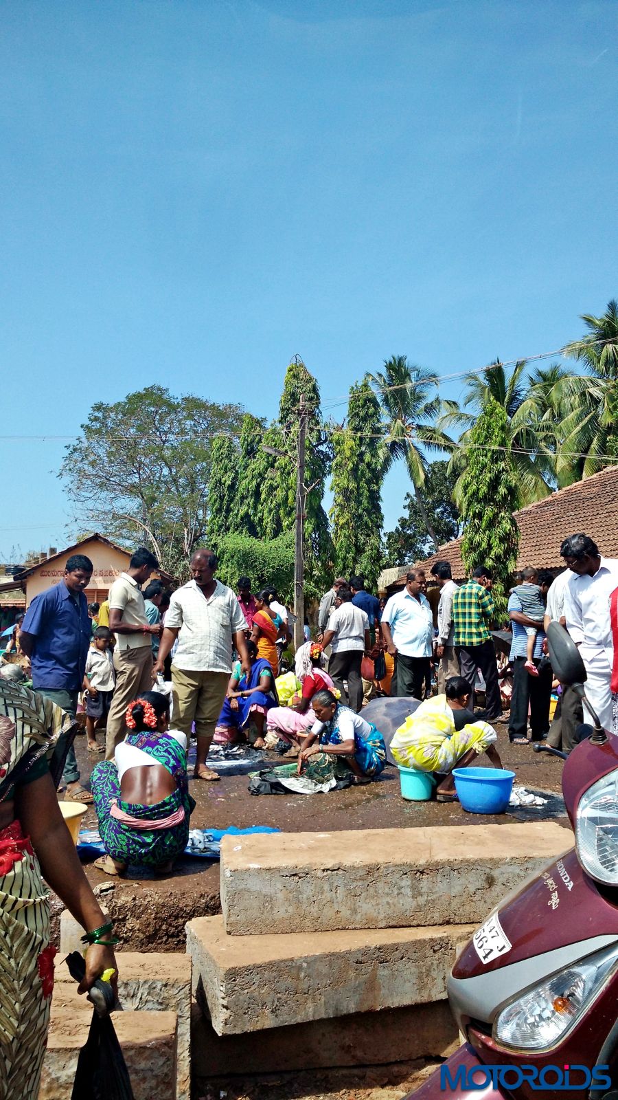 Trying to figure a shorter route to Gokarna, we lost our way and landed up in a chaotic village. Wasted time while trying to save some. In pic – a fish market in the village.