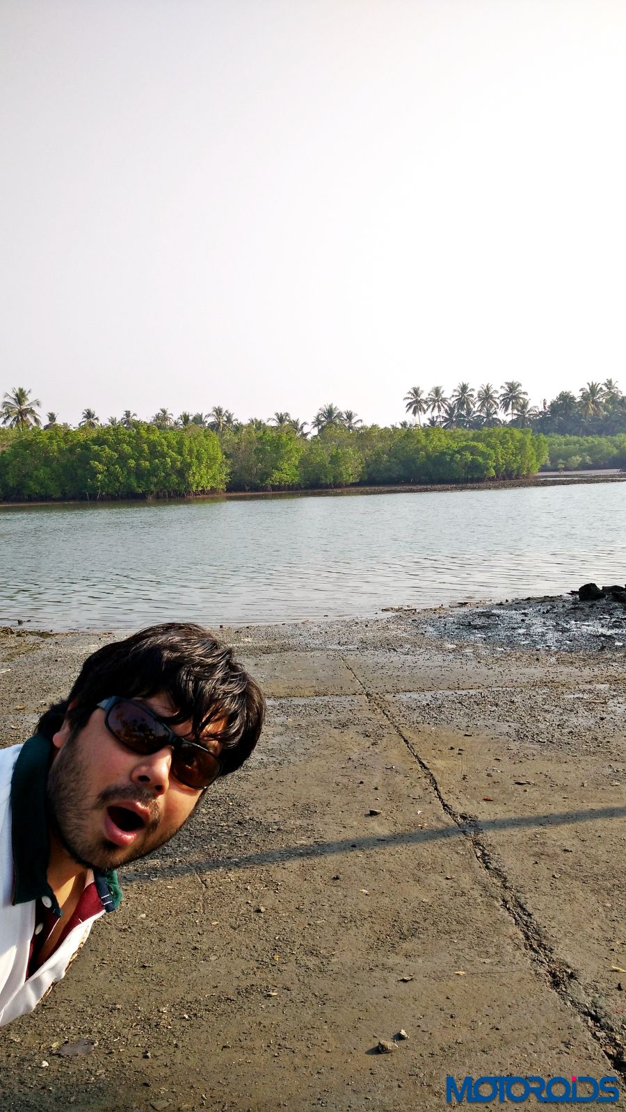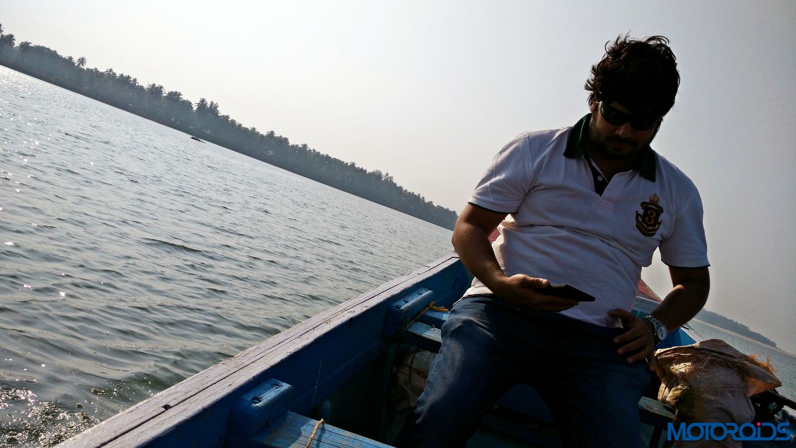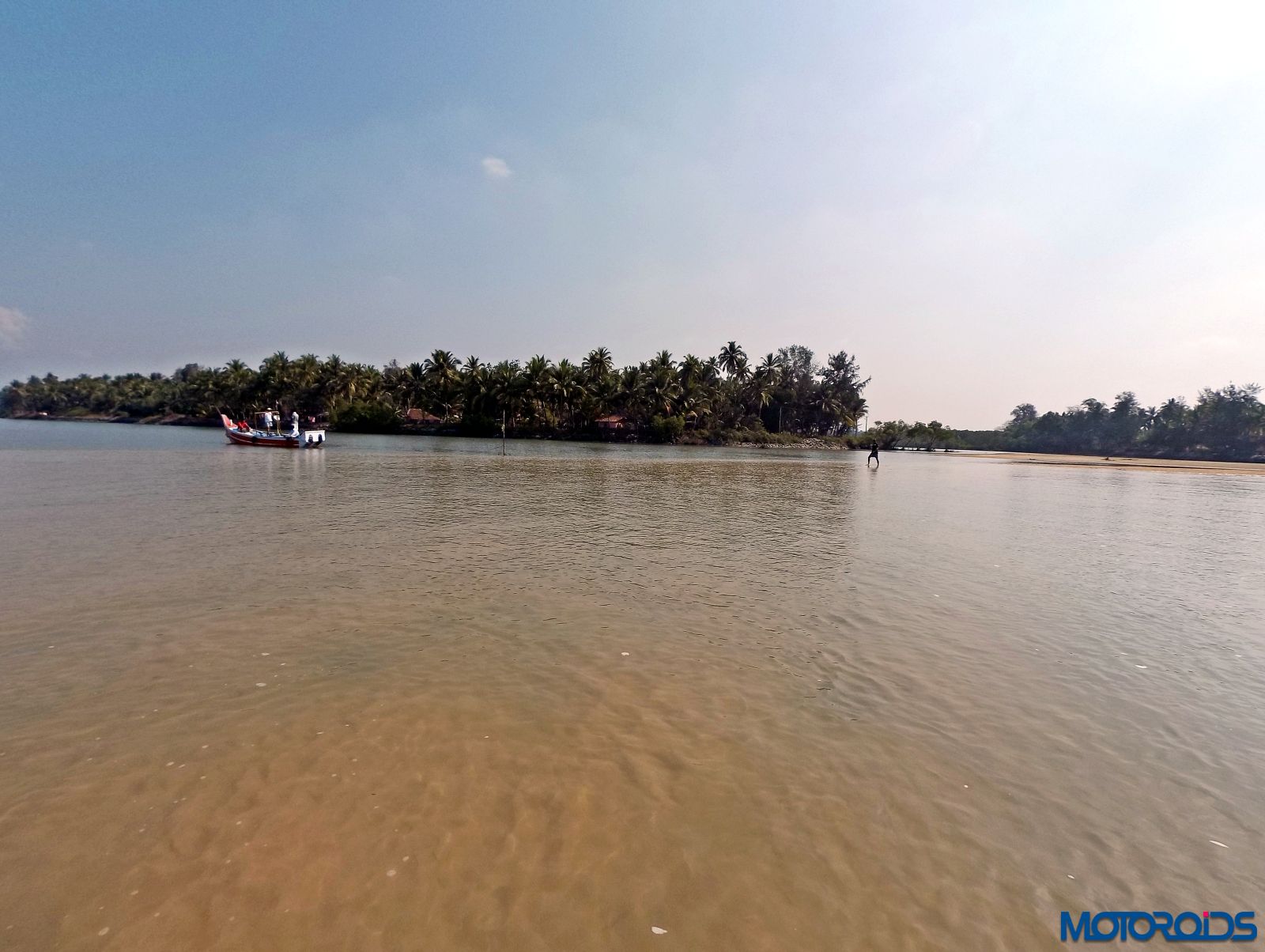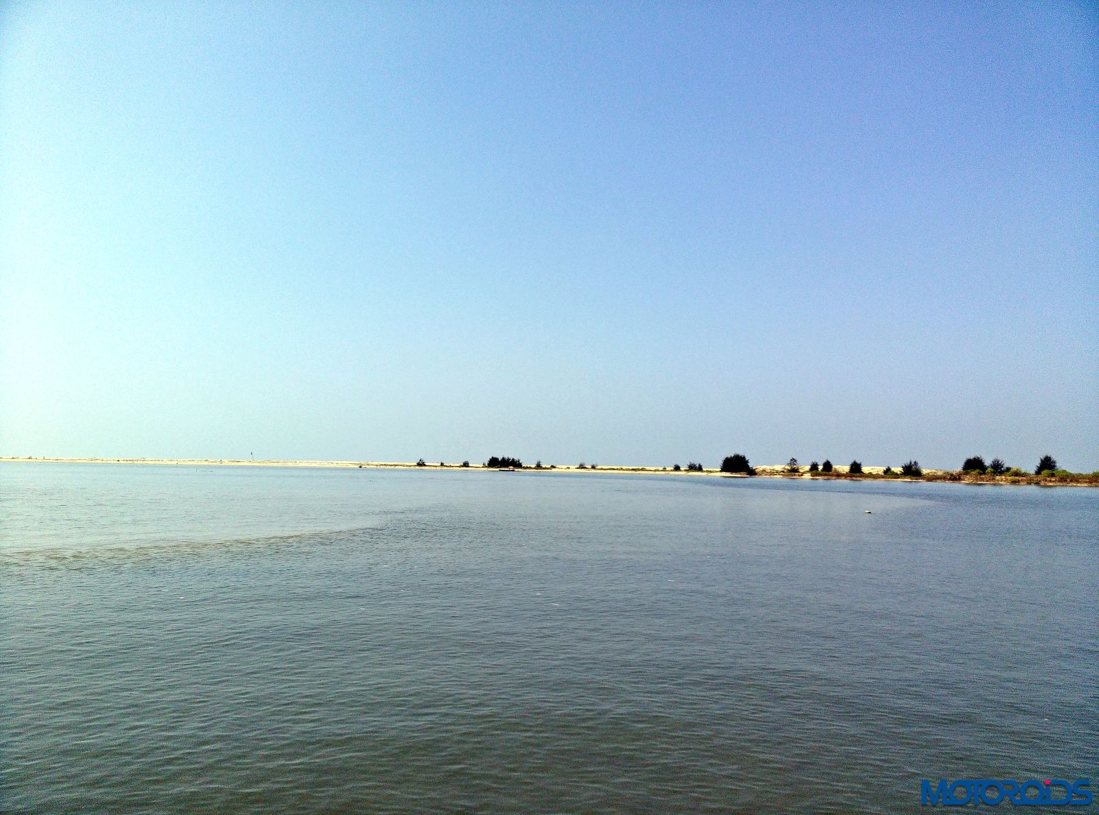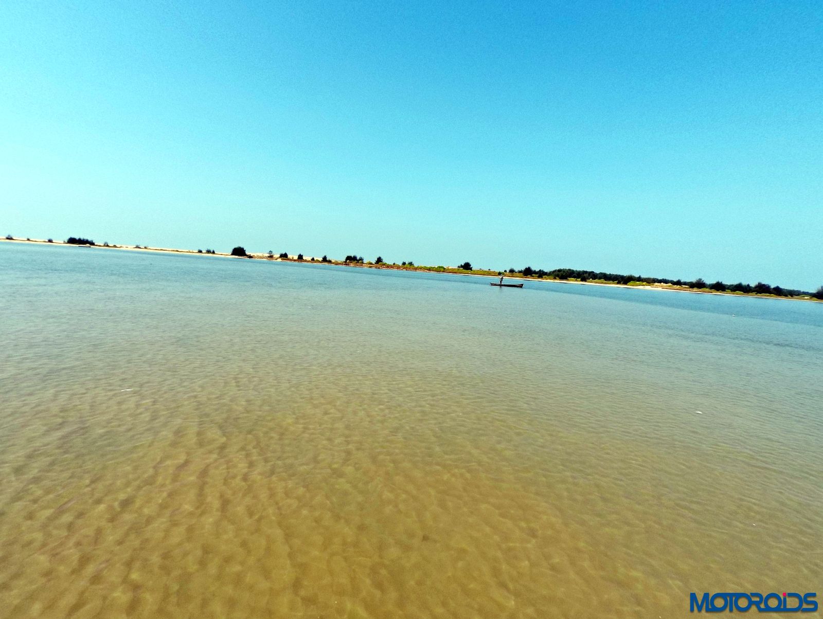 The place where the river meets the sea is a massive expanse of shallow, knee deep water. It’s like a kilometer long pool of fresh water to splash around in. Water isn’t deep, so the boatman has to row. See the sandy beach in the distance? That’s how far you can walk in the water