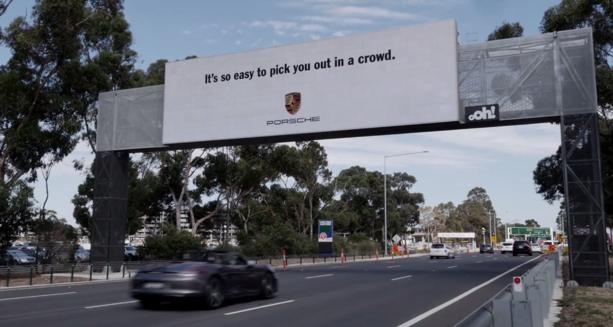 Clever billboard detects Porsches on the road; sends warm message