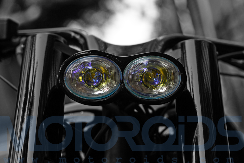 The tiny twin headlamps give the Dark Knight its characteristic face