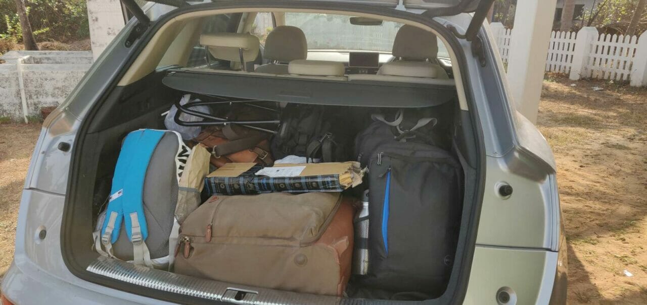 Three days went by in a jiffy and it was time to head back. Since we were starting during the day, to make the most of the vistas outside, the panoramic sunroof’s cover was opened for the first time. We were taking the same route to return and decided to skip on visiting the temple town of Murdeshwar (which you must), in order to see a little more of the forest which we were about to cut through on our way back.