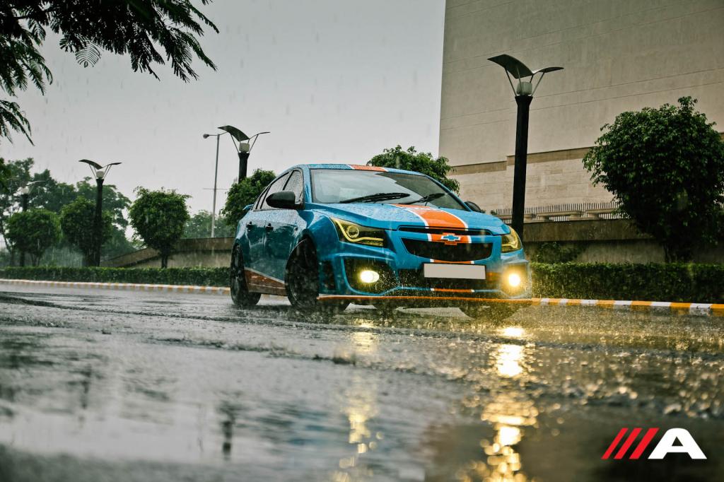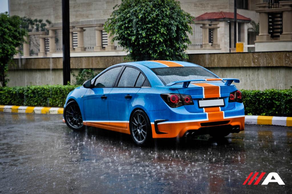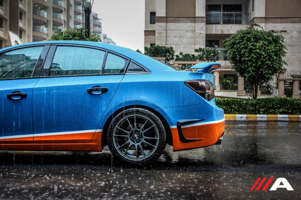 With its initial popularity, there are quite a few modified examples around, but Gurgaon based custom car outfit Autopsyche has undeniably whipped up one of the most eye-catching, modified Chevrolet Cruze (s) in the country. What straightaway garbs one’s attention is the custom, dual tone paintjob in Porsche Speedster Blue & BMW Fire Orange with the iconic Gulf Racing livery – no wraps or stickers here.