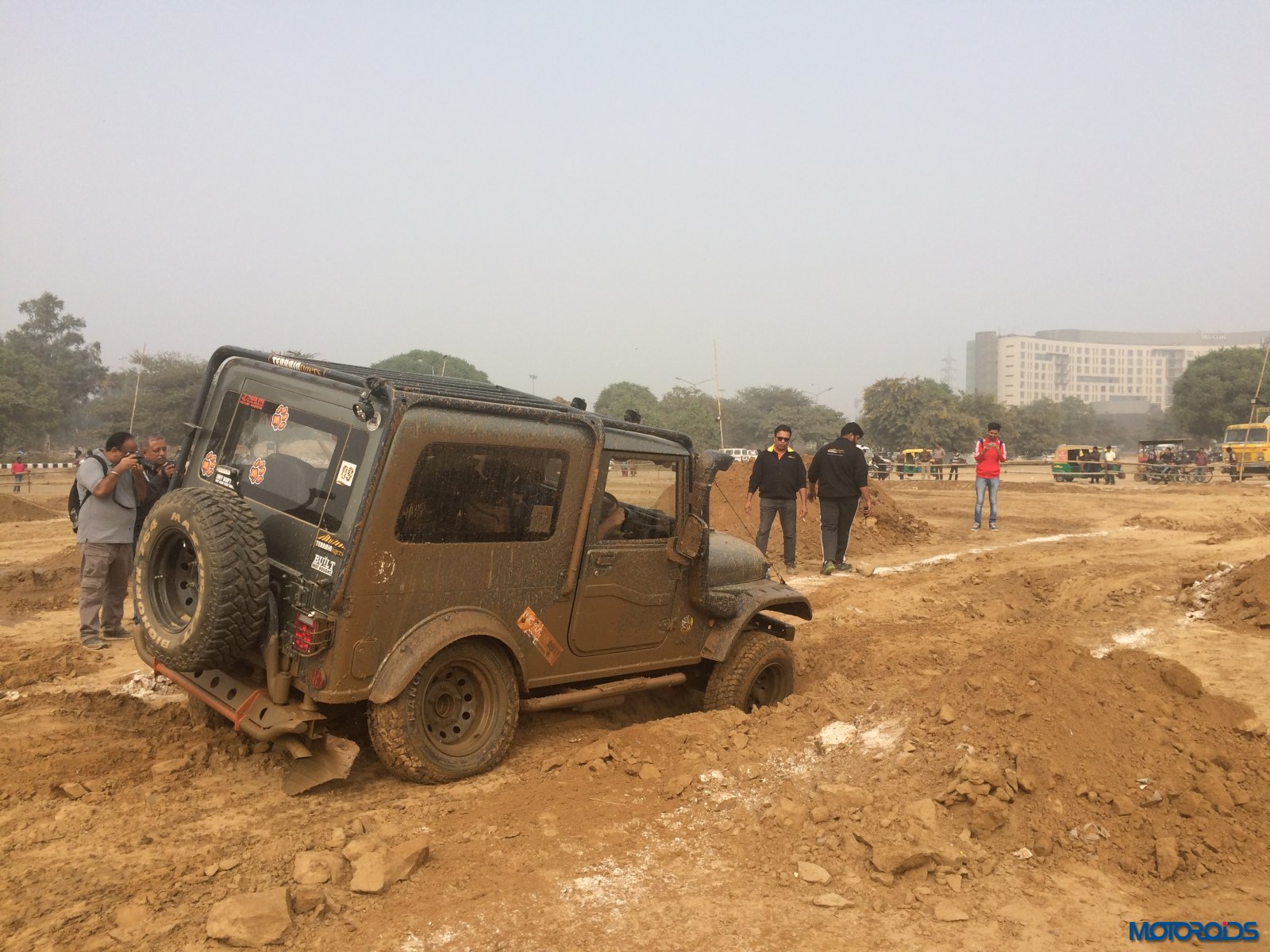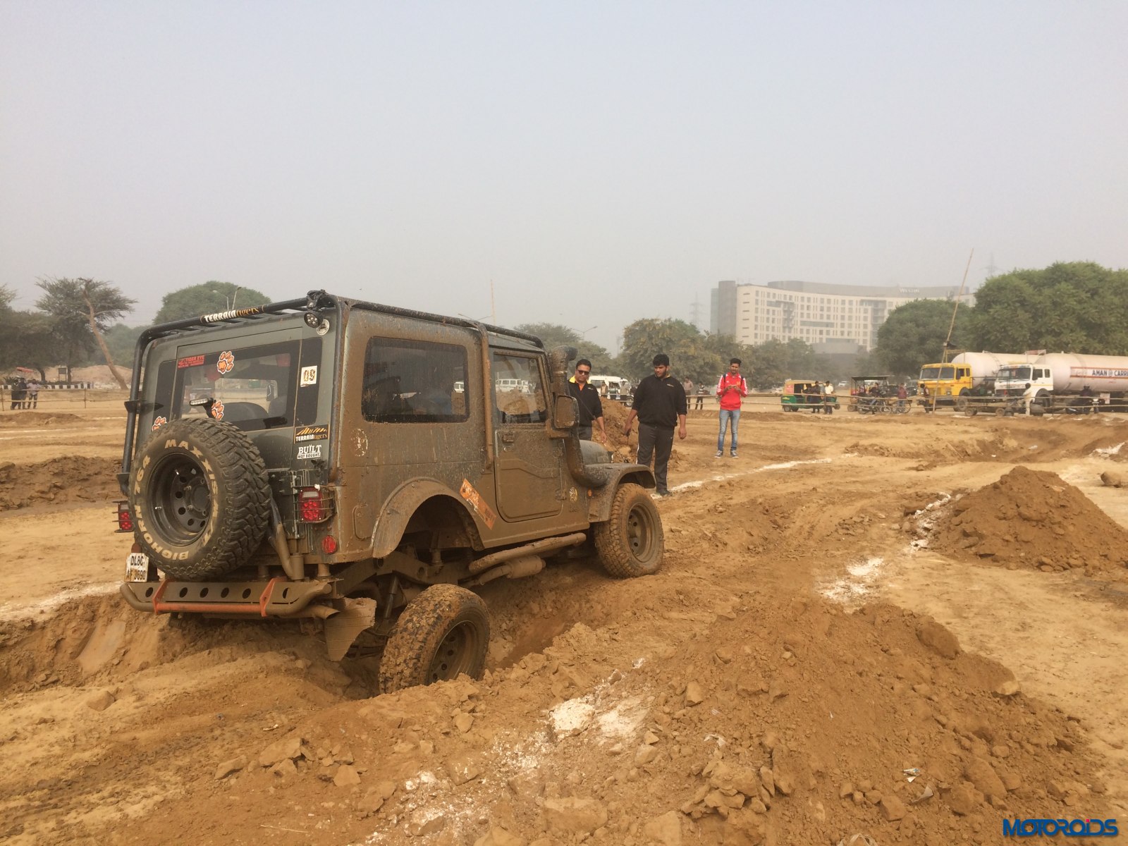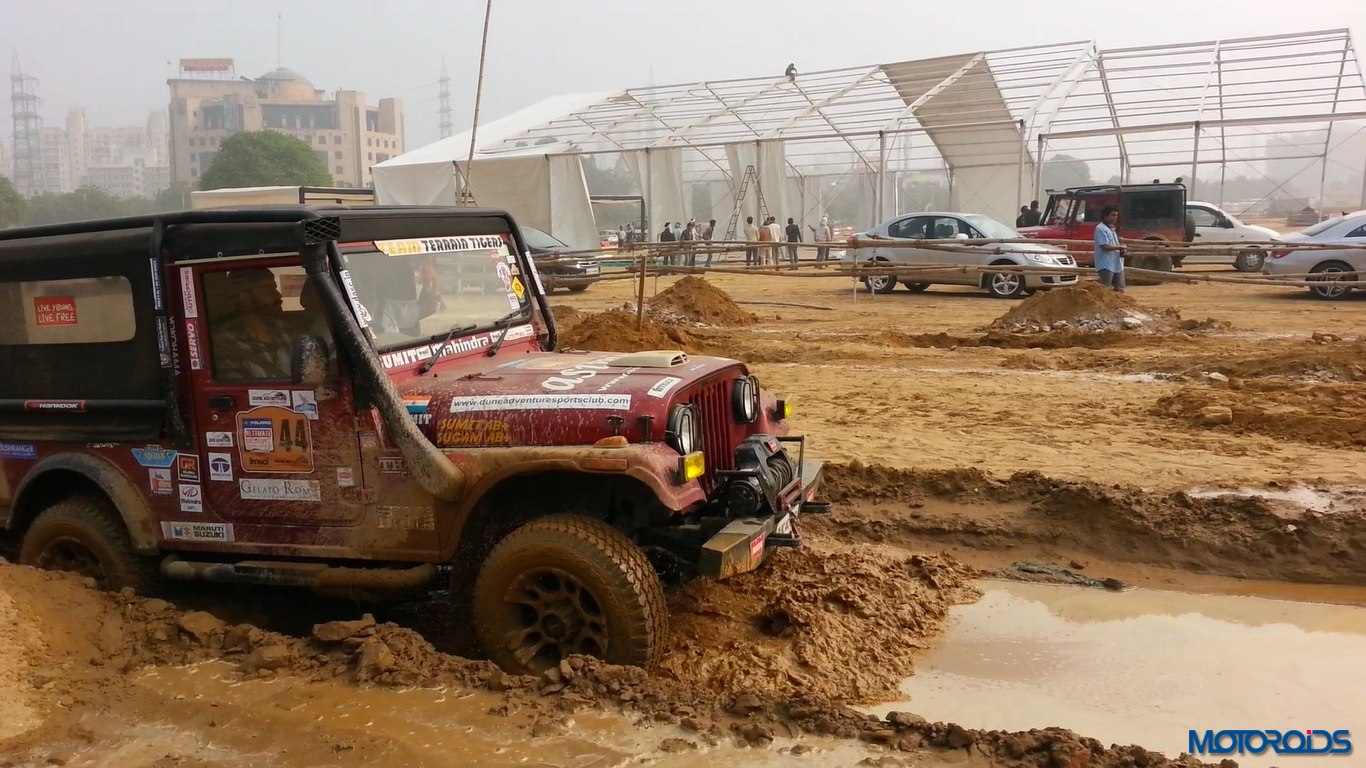 The Plateau section was similar to the deep rut section, just that the inclines were above the ground rather than below it. Then came the real fun part – the mud section. A long pit was filled with water and we just powered right through it. While the tyres managed just fine, we did hear a scream from the oblivious photographer standing not too far away who shrieked in the fear of getting his expensive camera splashed. Thankfully no damage was done. The tyres did not spin or lose traction even in soft mud. However, once the mud gets into the grooves and sticks there adamantly, you do experience some wheelspin .
