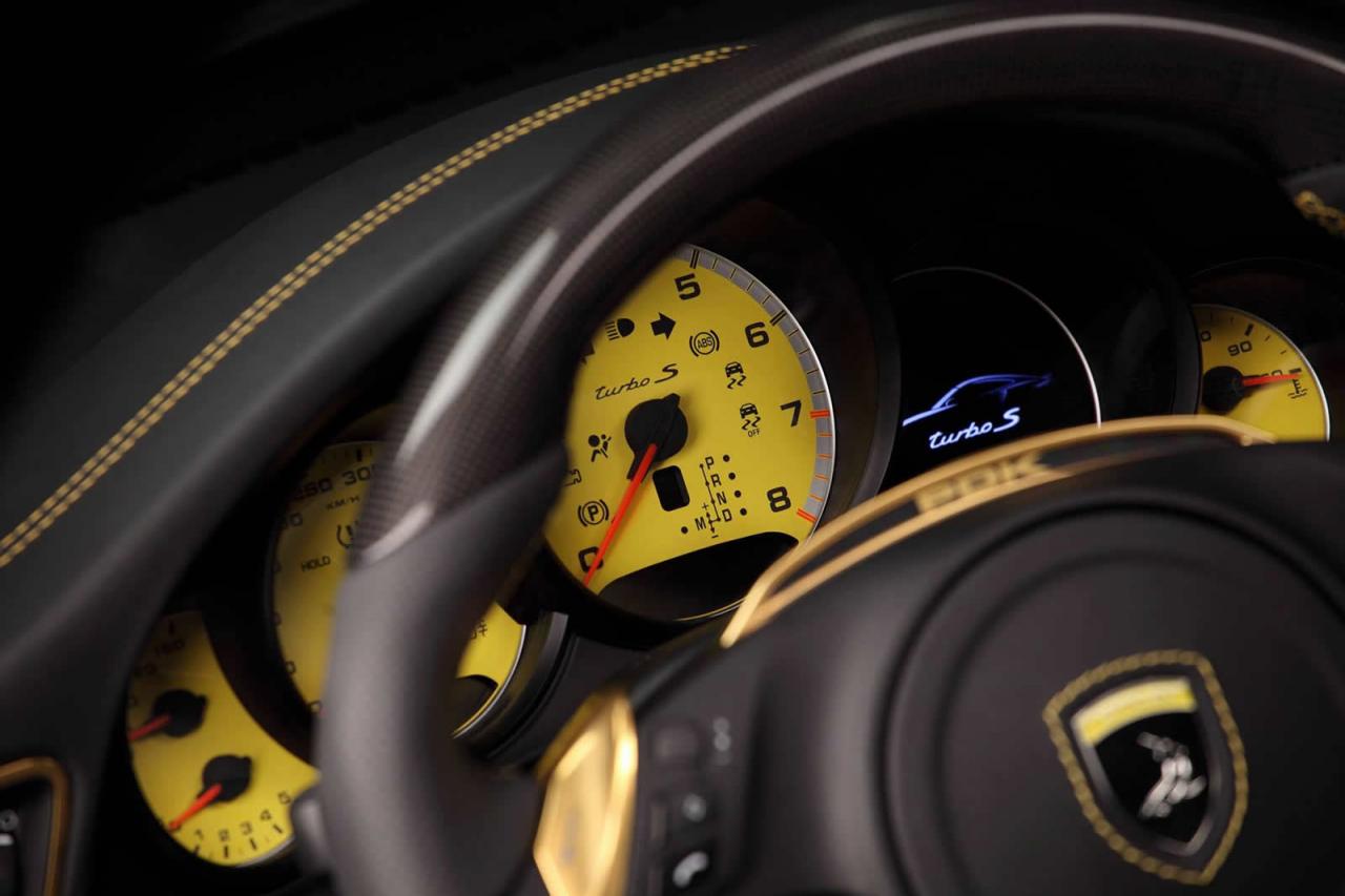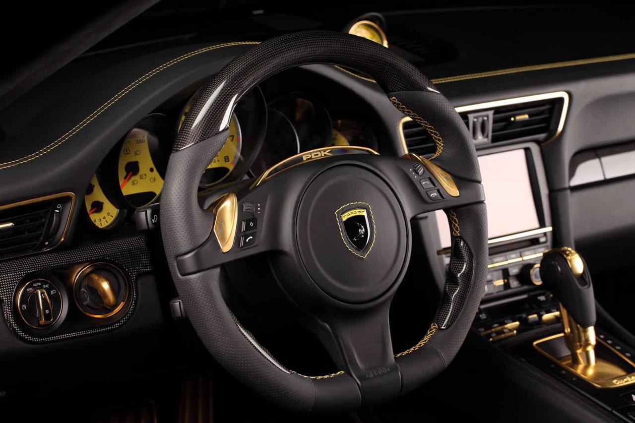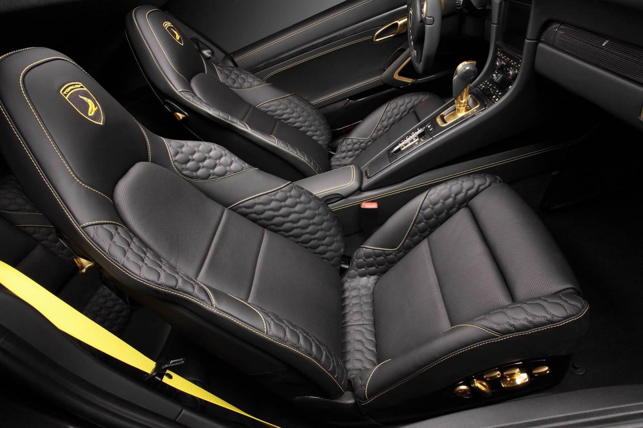Now, let us bring our attention back to what’s new; the Porsche 991 GTR Carbon Edition. The Carbon Edition is almost similar to the earlier Stinger models of the Porsche 911, except this one looks drop-dead sensuous and you better like people clicking pictures of your car if you plan to purchase one of these black beauties. TOPCAR has gone about replacing almost each and every exterior body panel of the car. So in place of the ‘run-of-the-mills’ factory materials, the Russian tuning house has laid 24 brand-new carbon-fibre components. TOPCAR has also thrown in brushed gold elements on the steering wheel, centre console, door panels and handles, and some on the dashboard as well. The Porsche 991 GTR Carbon Edition also comes with carbon-fibre bits in the cabin and Nappa leather upholstery; the latter comes embellished with custom yellow contrast stitching too.