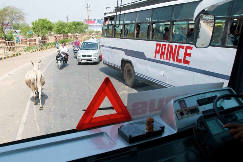 We are an animal loving country, explains why we hardly witness any PETA protests, not even the ones where people are dressed. Explains why animals on our roads are as common a sight as are gun wielding hooligans in our neighbouring nations. Cows are sacred, so people are scared to shoo them away from the road; in fact, some think that their journey will now be uneventful since they came across one. However, these thoughts wouldn’t be shared by that bloke who is following a large bus on a motorcycle, when the bus driver does nothing to slow down, takes the other lane, misses the cow and leaves the ‘Moowtorcyclist’ to deal with it. Although a good rider will always keep a safe distance from tall, large vehicles which obstruct the view ahead.