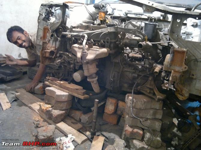 Ezio, as Riddhi’s sobriquet goes, took the Esteem in, after having paid a few pennies, because this is the guy who had earlier refused to buy a Honda City i-VTEC engine, only for INR 30,000. With the donor car issue sorted, work on the project began. The team got hold of a new battery, and managed to start the Esteem up with a few drops of oil and some patience. Much to their amuse, the gearbox worked perfectly as well.