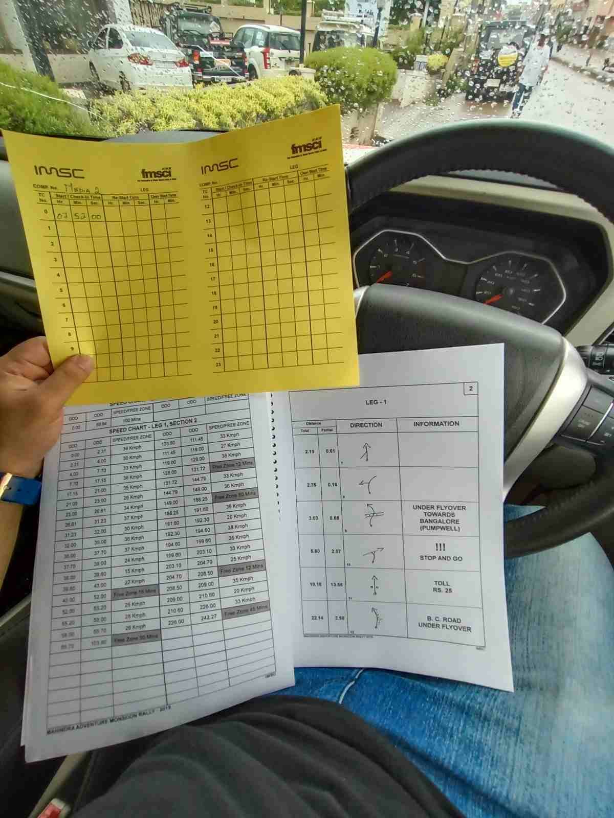 They are given a road book which has the entire route written down by virtue of signs and symbols. A key to these symbols was given to us during the briefing. The participants were also handed a time chart where the time interval with respect to the distance travelled was written down. There were intermediate checkpoints throughout the route where the time was noted down.