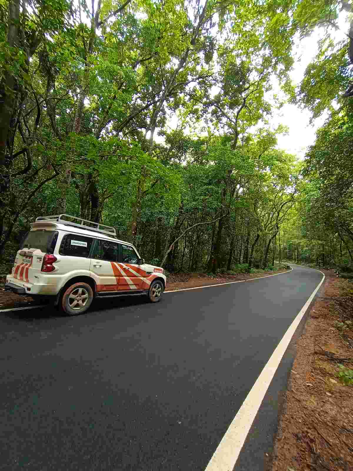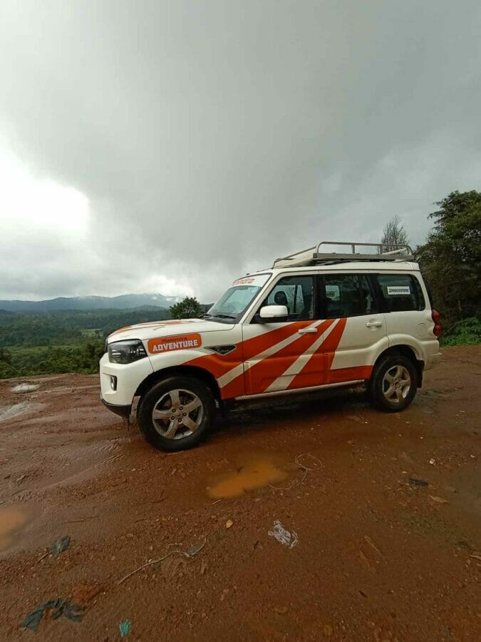 Day 1 saw us navigate through some really dense forest towards Coorg. The terrain was treacherous but the 4×4 capabilities of the Scorpio had us manoeuvre it with ease. The organizers had ‘Free Zones’ for us at regular intervals where we were able to stretch our legs with ease. Chasing the meandering highways towards Madikeri in the rains was an absolutely delightful experience.