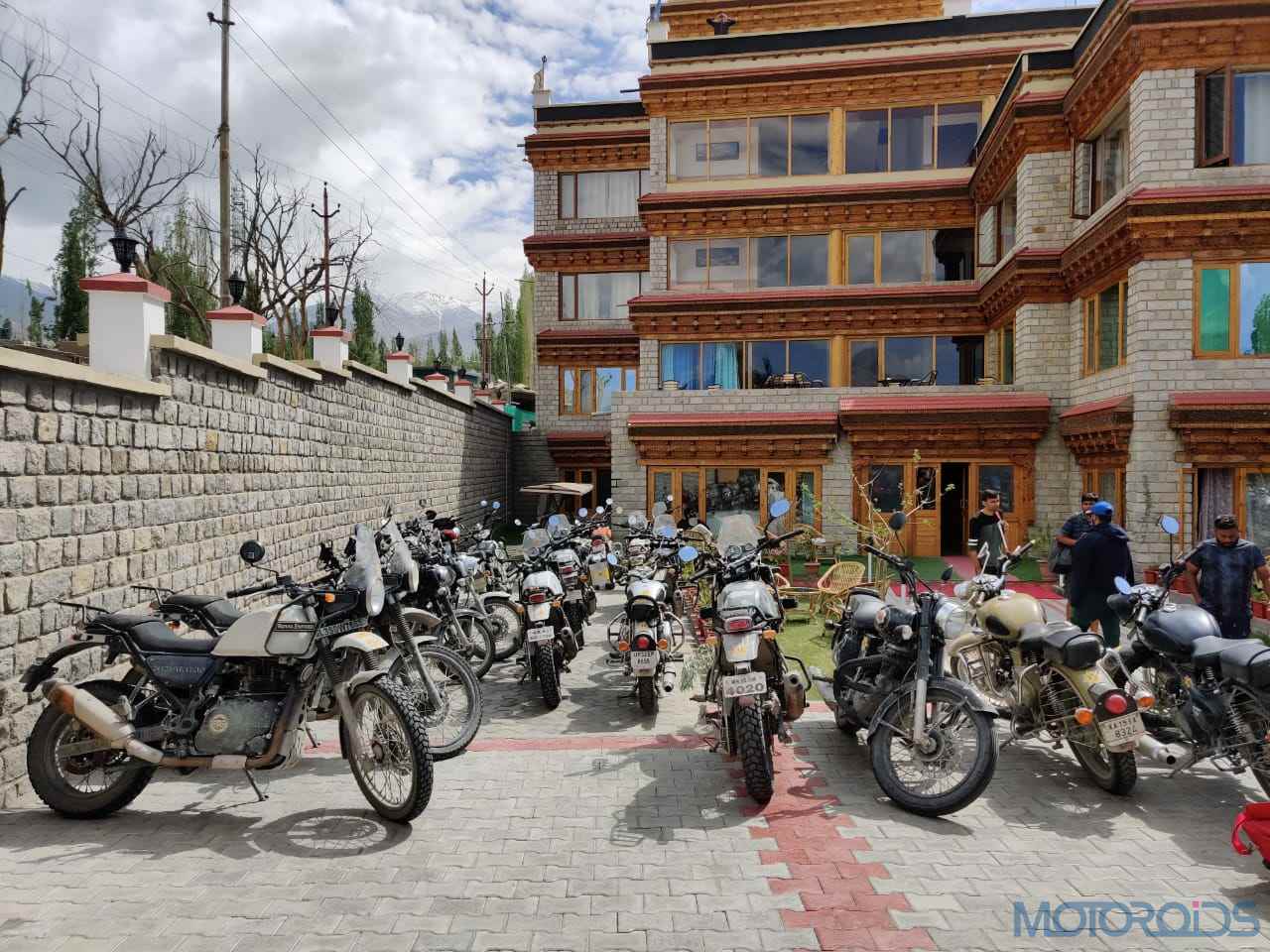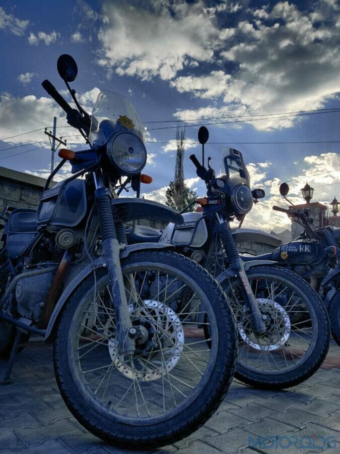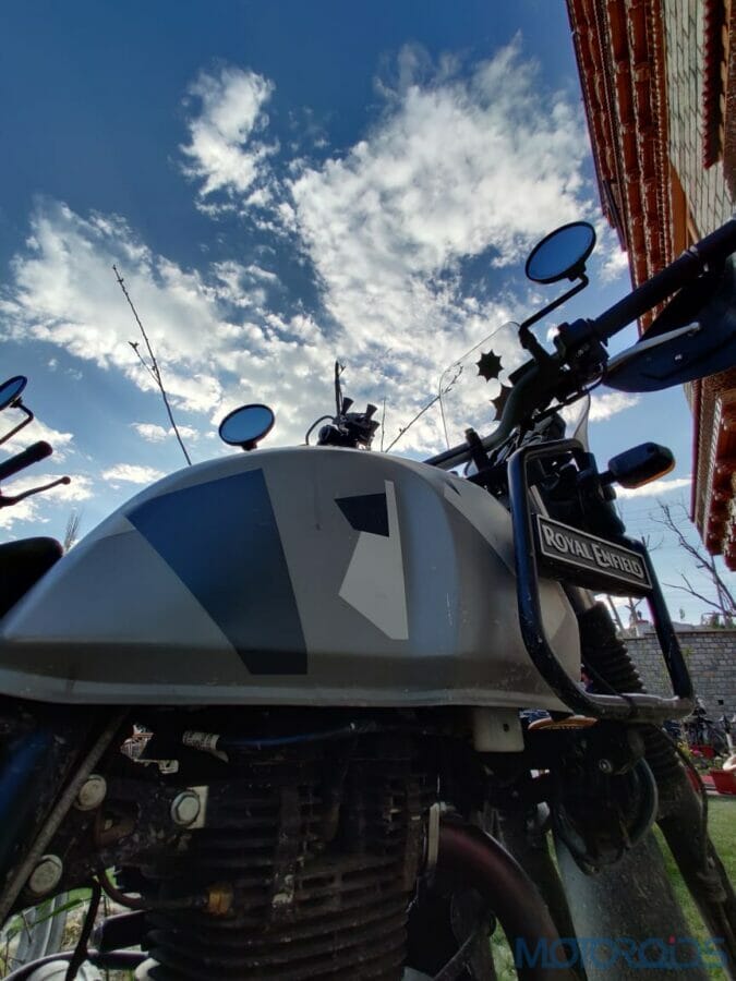 The bike I was given was special, it was the Himalayan with the Explorer kit. Which meant I get to thoroughly indulge the Braced handlebar and machined bar-end weights, park my glutes comfortably on the touring seat, not bother much as ride stand up and ride over rock and gravel, thanks to the engine guard and finally pack as much food and water and other essentials without breaking my back – courtesy – the Aluminium Panniers with the mounting kit. My grin was ear to ear because only three bikes of the 50 odd had this kit fitted on.
