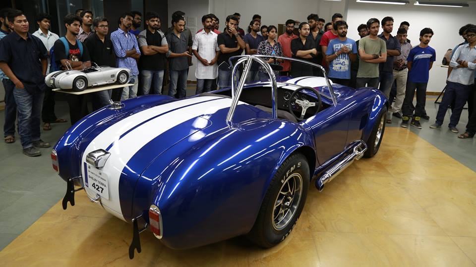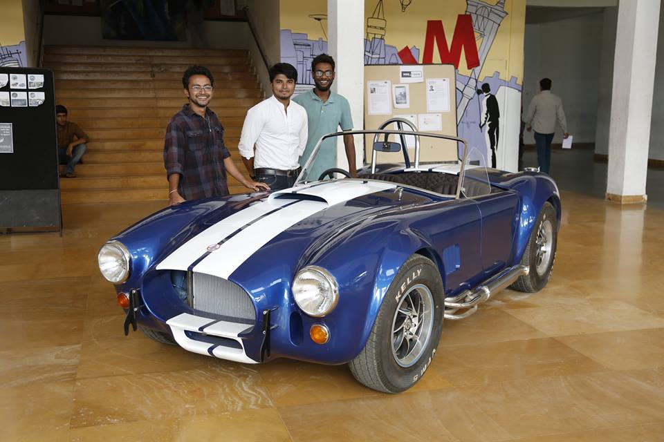 As a part of their final year project, Vishnu Prathap and Suyash Kalbhor from the Transportation Design department of MIT Institute of Design have created a replica of the Shelby Cobra 427 with a Maruti 800 heart. The duo, part of a team of five core members and faculty member Donshong Koren, took almost nine months to finish the entire project, work on which started in August 2015. A sum of INR 5 lakh was sanctioned for the project from the college authorities, but that didn’t suffice, and when the coffers ran dry, faculty members and students chipped in from their own pockets. Ultimately, they collectively ended up spending around INR 3.5 lakh to INR 4 lakh on the entire project, apart from the sum initially assigned.