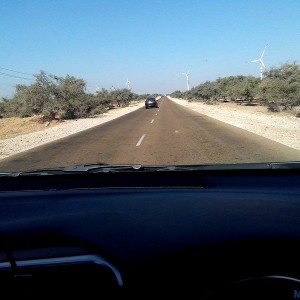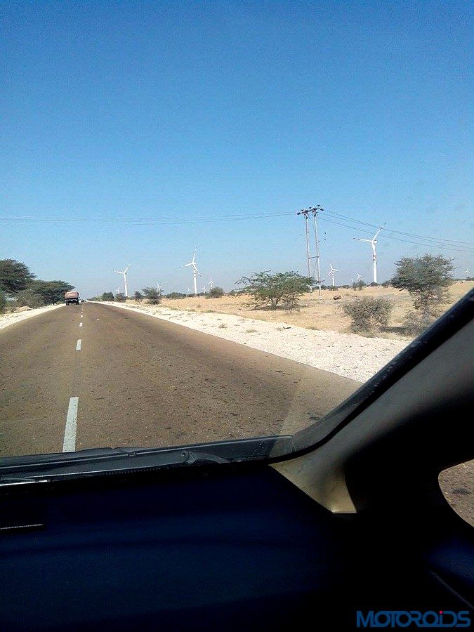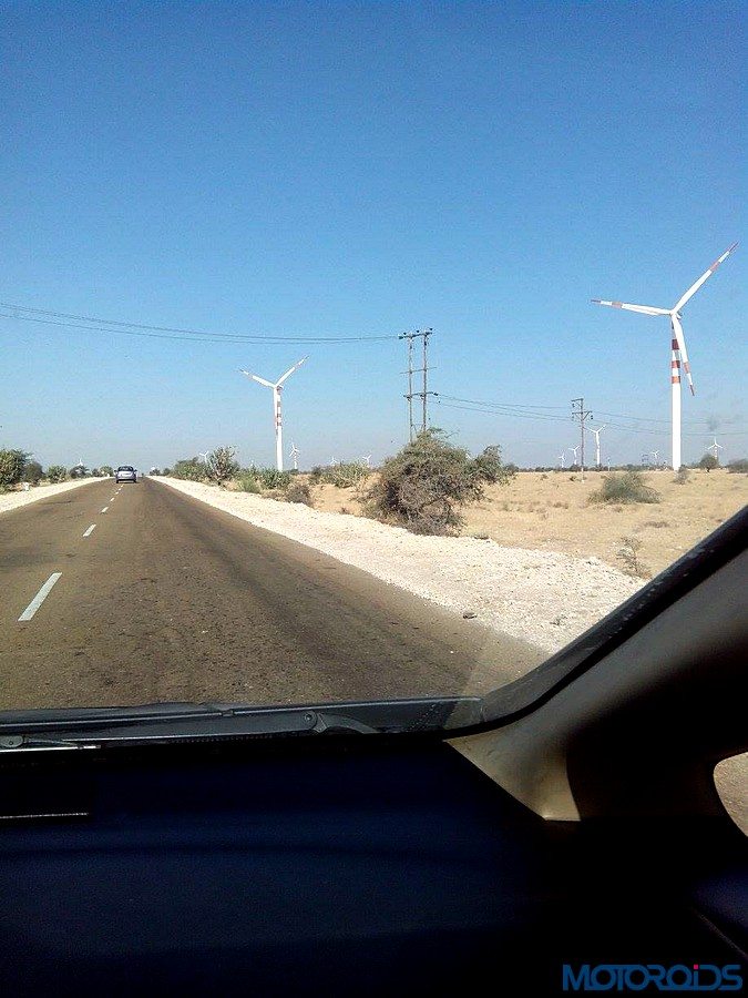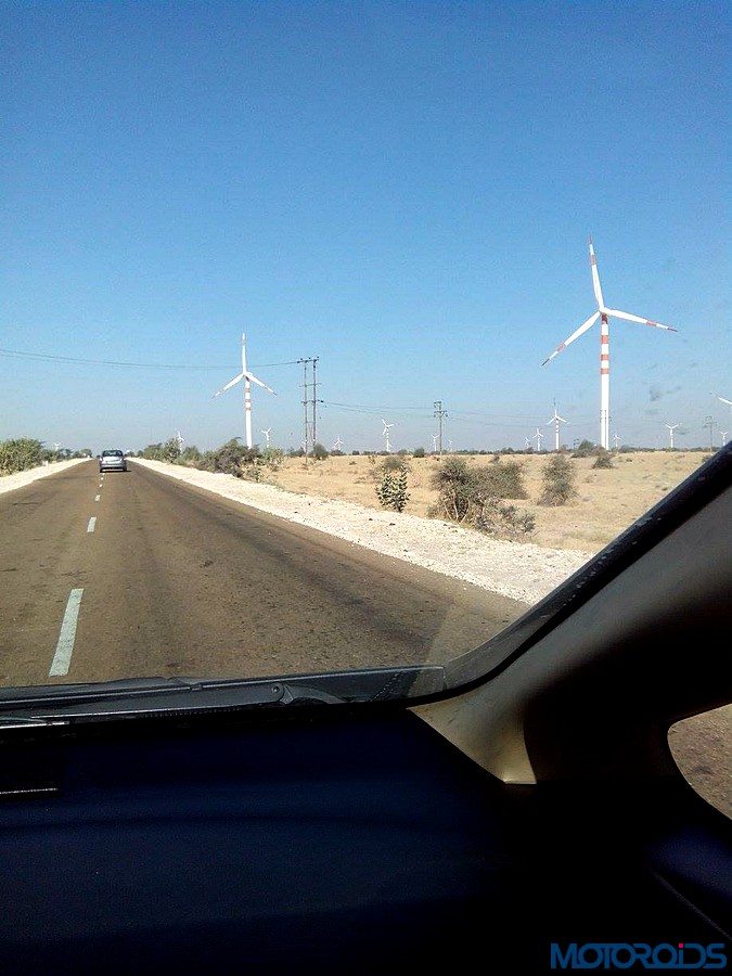 Then there are the windmills – thousands of them; spiking up against the blue and relentlessly chopping the air. We stopped for a rather long photo shoot on a deserted stretch of the arrow straight highway and sped off towards Laungewala.