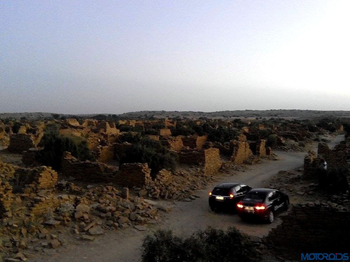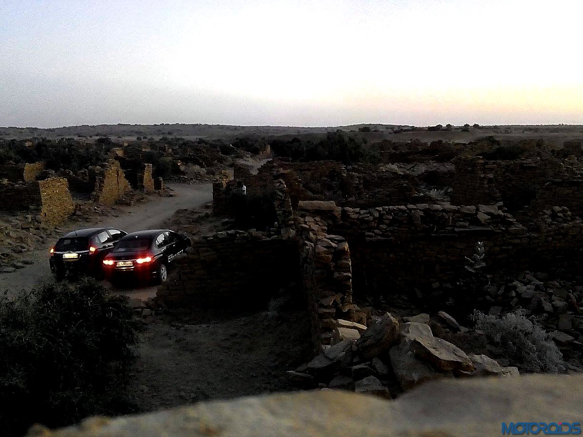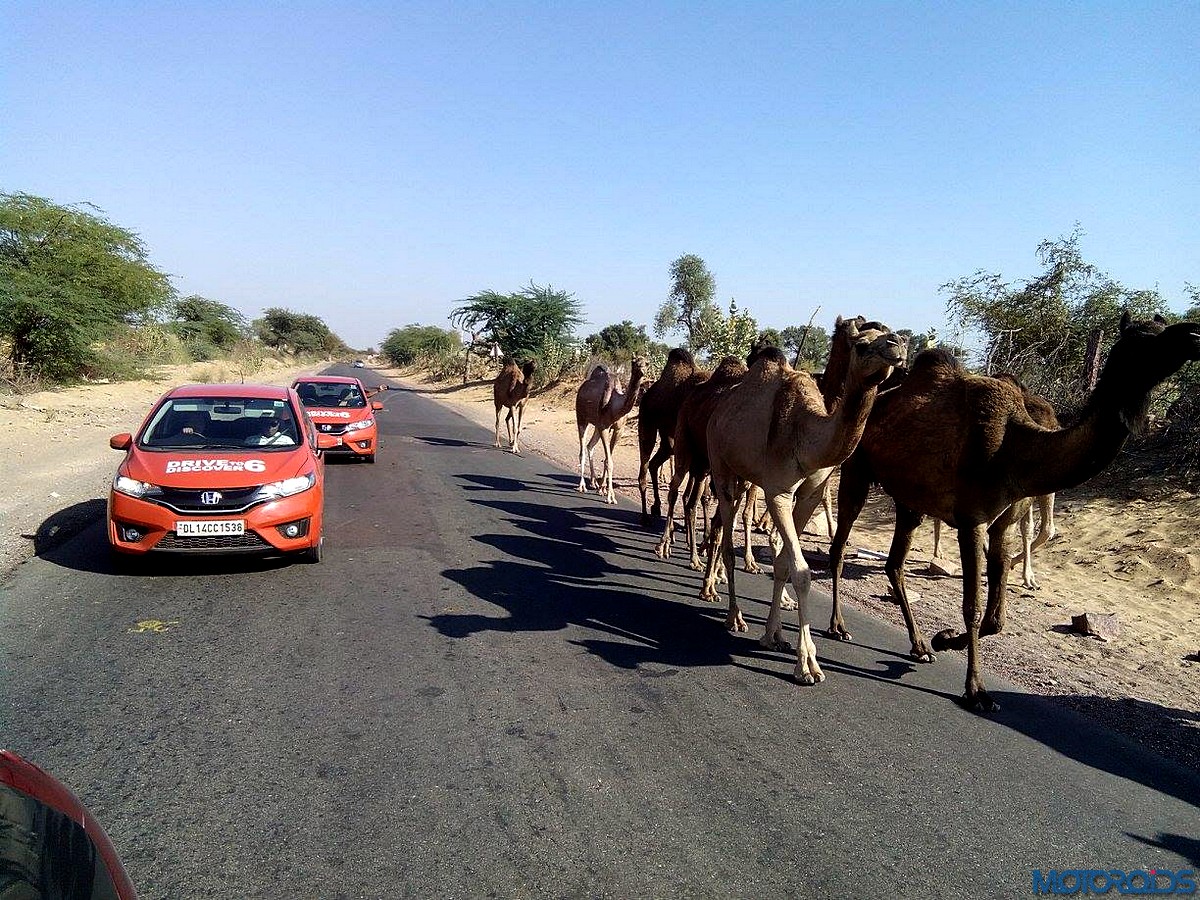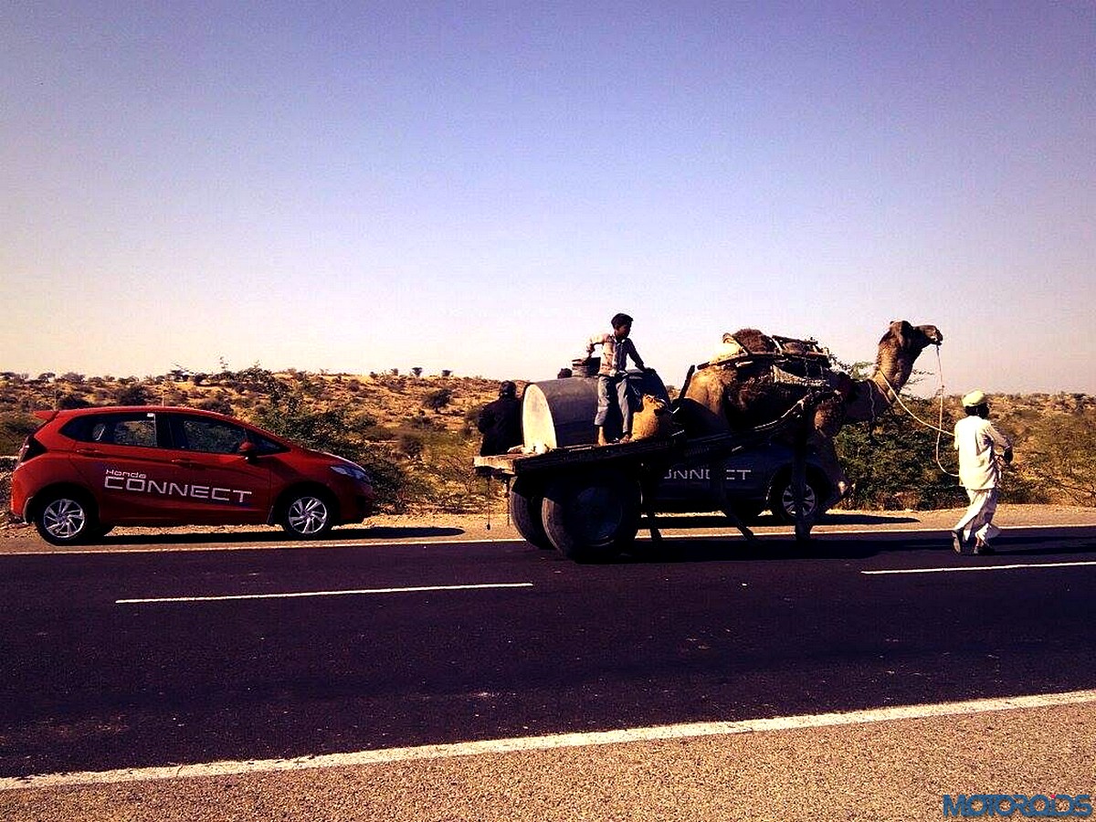 The next day, we were flagged off to Jaisalmer, some 250 odd kilometres away. I was in the Honda CR-V, and drove for the latter half of the journey. Getting out of Jodhpur’s hustle and bustle in a matter of minutes, we hit the highway. Driving in Rajasthan, as I was about to find out, is as blissful as it is dangerous. The roads, mostly single carriageways, are usually spotless, sparsely trafficked and straight. However, patches of road work suddenly come at you without warning, and suddenly the surfaces give way to gravel and dust. Especially at night, these road works are to watch out for as barrelling down the good patches at three digit speeds becomes the norm.