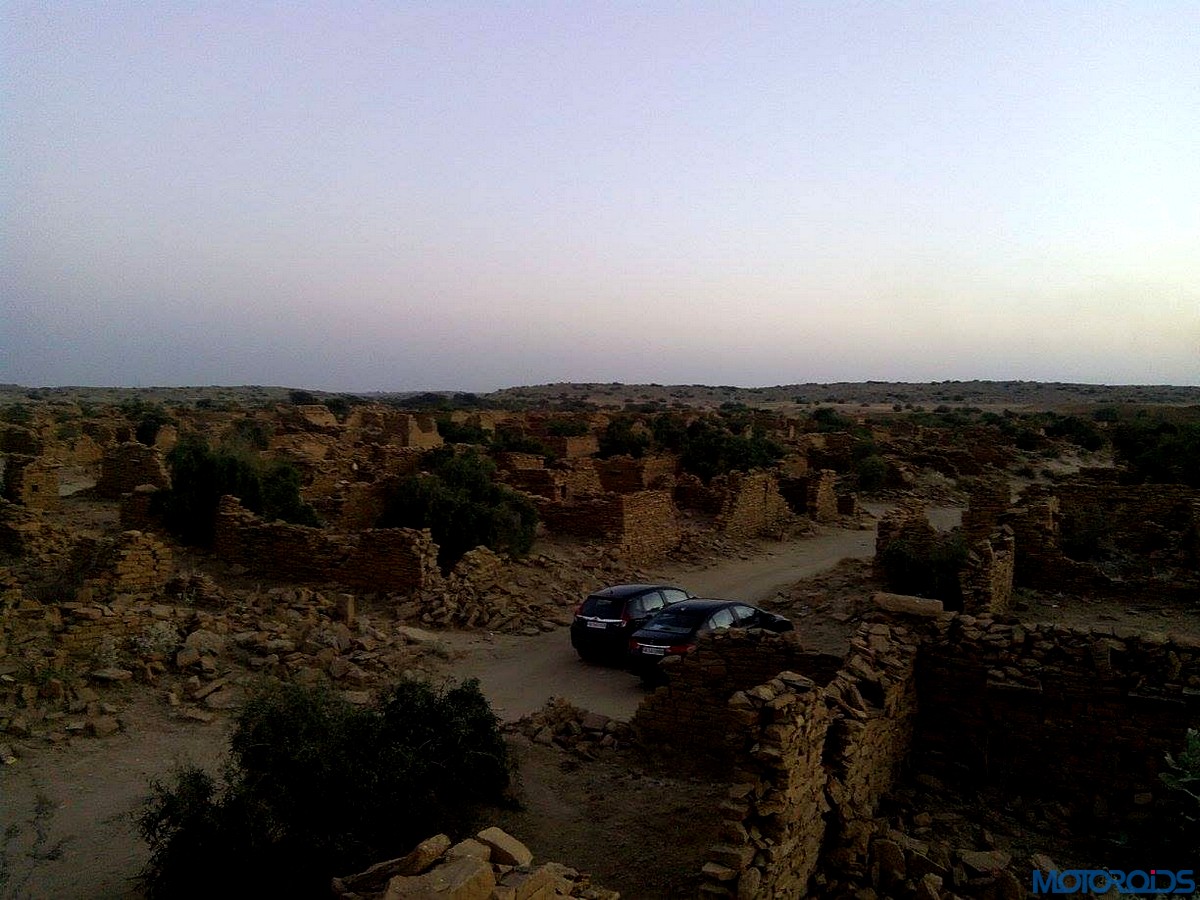 By the time we were done exploring, the evening was starting to creep in, so we decided to head to the village of Kuldhara, some 17 km from Jaisalmer. Now Kuldhara is one of the many deserted and haunted villages that speckle the vast, dry lands of Rajasthan. Folklore has it that the entire village had disappeared one day, giving in to the angst spread by one tyrant king. Nobody knows where the villagers went, except for the fact that they had left over the ruins of a village where, to this day, their souls reportedly wander in the dead of night.