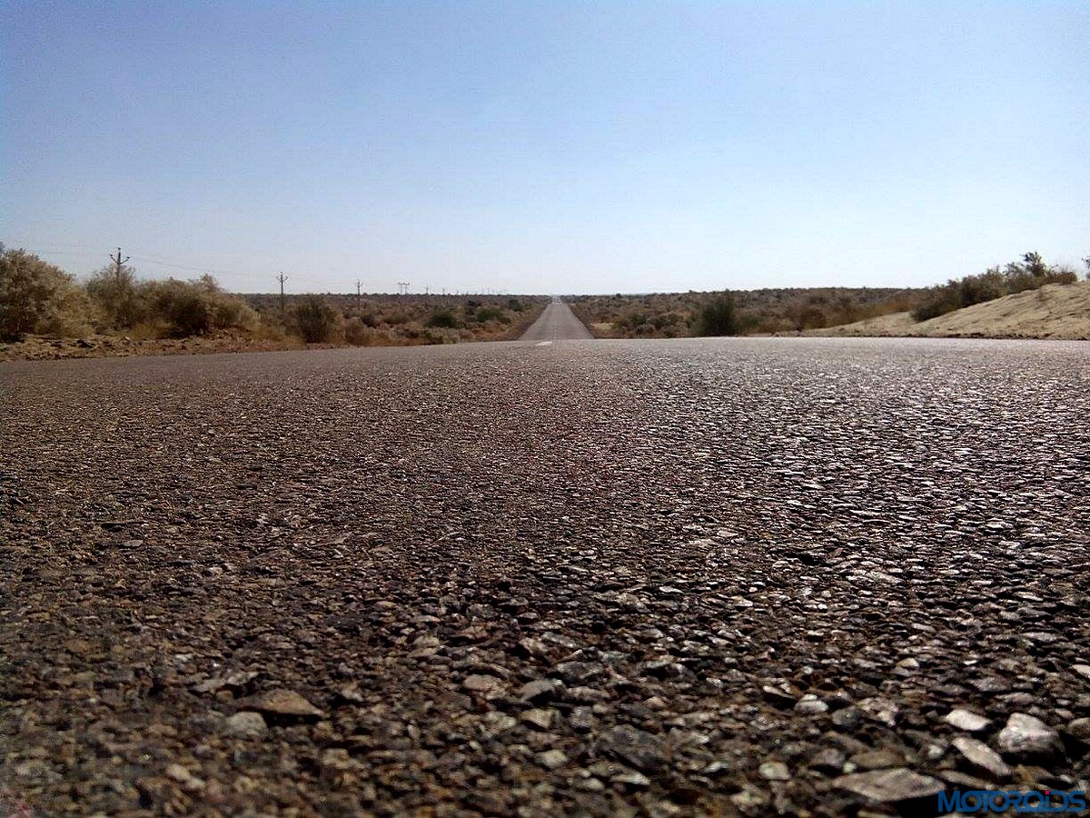 Then there are the animals. Most of these highways, like the one which we were on (NH14) pass through uncharted territory, where animals roam around freely in the middle of the road. Species commonly loitering around are cattle, goats, sheep, camels, dogs, donkeys and the occasional, suicidal nilgai that doesn’t give two hoots about darting across the roads from nowhere. Luckily, during the day, the arrow straight roads cutting across the plains, coupled with the pristine blue of the skies and mellow sunlight meant that visibility wasn’t an issue. At night, however, things can get tricky.