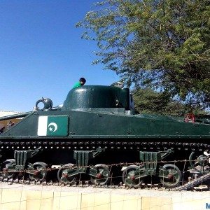 One of the two antiquated tanks which were captured from the Pakistani forces has been turned into an exhibit.