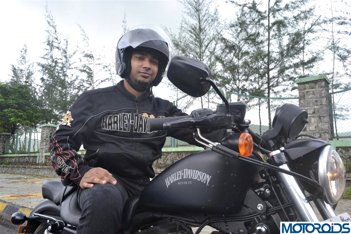 Meet Prasad Parkar- a son into learning his father business and a Harley enthusiast at the core. Having started riding motorcycles at the age of 17 on a humble Bajaj Pulsar 150, Prasad has always been inclined to the two-wheeled species and low revving types in particular. Despite having a BMW 320D, a Toyota Corolla Altis and a souped up Suzuki Swift at home, he has never been too fond of cars and loves the “wind in the air” feeling while going places. Prasad favours a laid back style of riding, which he believes gives a greater sense of satisfaction than the thrill of speed. Complementing his inclination and style of riding saw him have his first motorcycle once he hit the legal riding age- a Royal Enfield Thunderbird 350, which now shares parking space with his “Darky” and new found love- the Harley Davidson Iron 883. Yes, the very same bike we happened to review last week, which Prasad with great confidence handed over the keys to us.