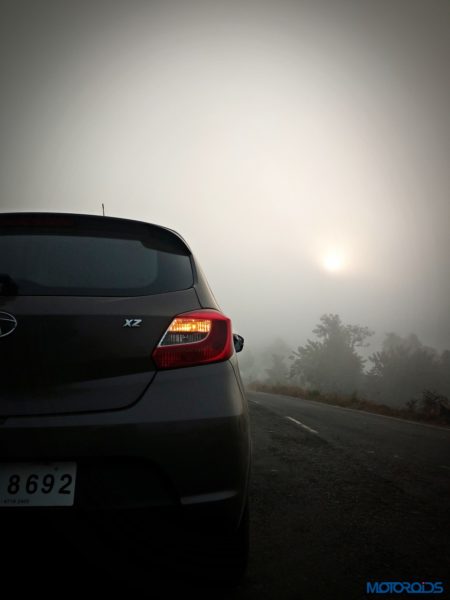 After running for a few beach-to-town errands for an evening barbecue, the Tiago was then ready to get us back to the city the next morning. This time taking the NH 66 from Khed, till the point where one cuts off to get to Khopoli and join the Expressway, we were again making brisk progress on roads devoid of any traffic. The car was loaded with 4 adults this time, with a couple of them in the backseat who almost literally ‘Live to Eat’. Back in the city, this time around, owing to the added weight, traffic and our relatively spirited driving, the car still returned an impressive figure of 20.8 kpl.