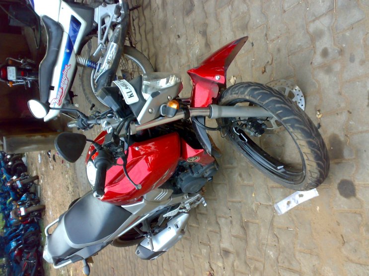 On 23rd July 2009, X-BHP member Binoy from Kerela took out his pristine, red Yamaha FZ-16 to grab a late night bite. Little did he know what was to befall on him. As Binoy hit the highway, he upped his pace and was doing over 100 kmph, when he encountered a car’s headlights blazing straight at him, and approaching fast. Someone was making a beeline for him in the wrong direction!