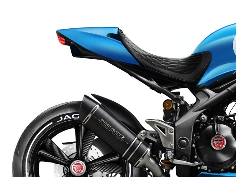 The reworked seat features diamond stitching with contrasting accents, and the under-seat exhausts from the motorcycle have been done away with, only to be replaced with a regular exhaust bearing Project 7 branding. The Project 7MC also sports Jaguar shield emblems covering the axle caps, clutch cover, while the front brake calipers are now done up in red. Unfortunately, Project 7MC is a virtual figment of imagination, and needs to be made right now! Serial investors, are you listening?
