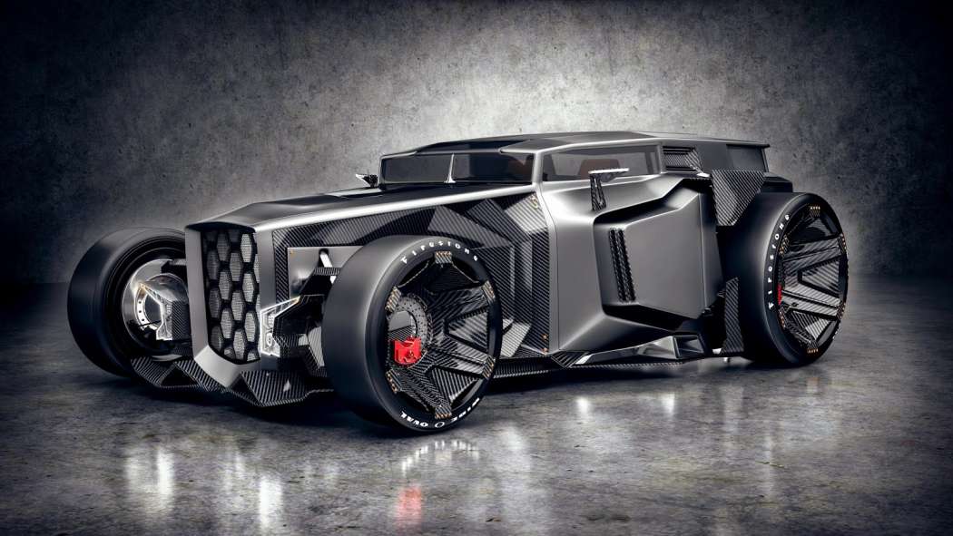 Apart from extreme design, the Rat Rod also showcases advanced engineering. This Rat Rod seats four adults, uses a hydraulic drive system to reduce weight, and rides on pushrod actuated suspension. It’s drag racing intents are confirmed with a twin-turbo Small Block V8 engine which is mated to a sequential 6-speed transmission. Carbon fibre has been used extensively around the central chassis-cell and a low-mounted engine has been pushed as far back as the design allowed to offer as close to 50/50 weight distribution as possible. The carbon fiber wheels are gargantuan, but have innovative built-in brake rotors.