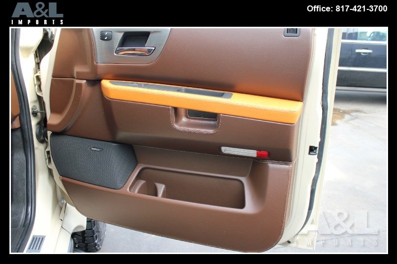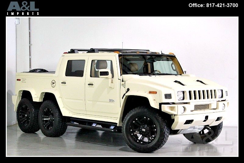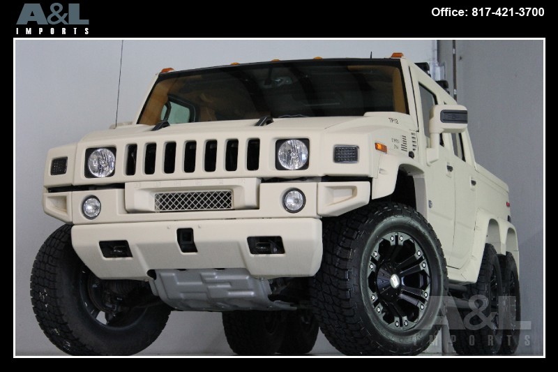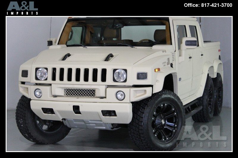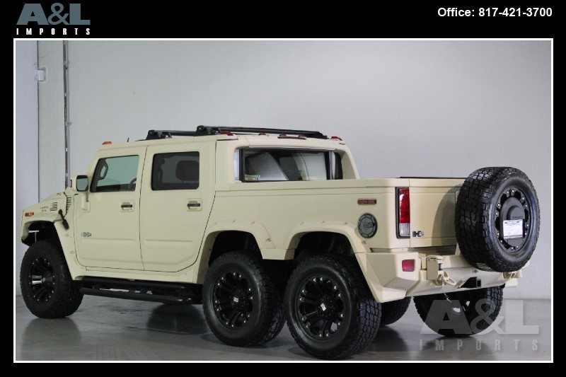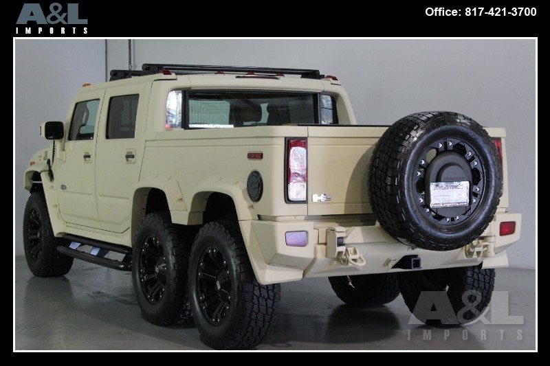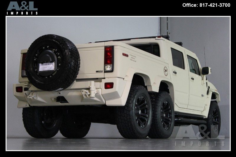It started life as a standard 2009 Hummer H2 SUT Luxury, before Custom Outfitter/Limo Company purchased it and created this unique build. Originally intended for China, the vehicle has been stretched, along with the addition of a dummy axle which is not in drive line. The H2 has also been repainted in “Flat Dark Earth” the military desert color, and comes with a redesigned interior with new leather all over. The vehicle is now up for sale at A&L Imports Inc., a specialty independent dealer located in Colleyville, TX, USA.
