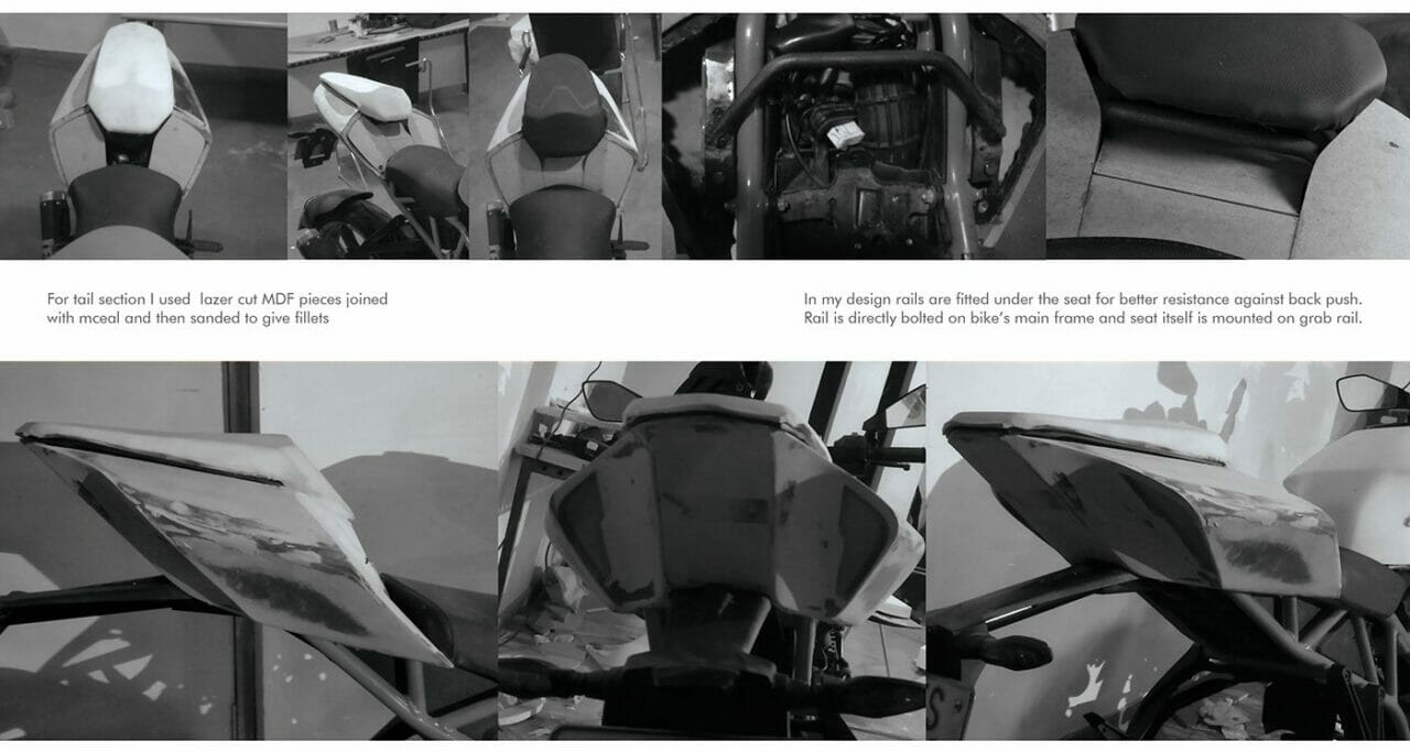A separate rail was bolted to the main frame under the seat to offer resistance for the rider when he accelerates hard. The rear seat was then bolted on this very rail.