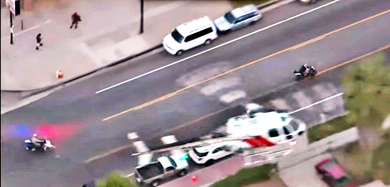 Emulating the riders desi style, a cop tries to obstruct his way by opening the door of his patrol car, but the rider manages to dodge him and goes on with his antics. The 22-year old then pulled into a gas station, lied down on his belly, and surrendered. Quite a pointless exercise we’d say, meant to be watched on a pointless day like Monday.