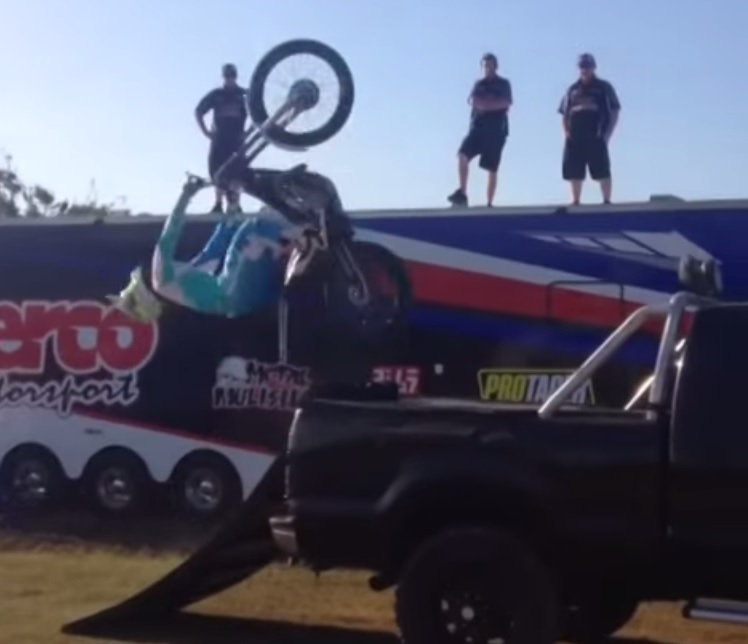 VIDEO: Rider does a backflip to load his motorcycle on a pickup truck