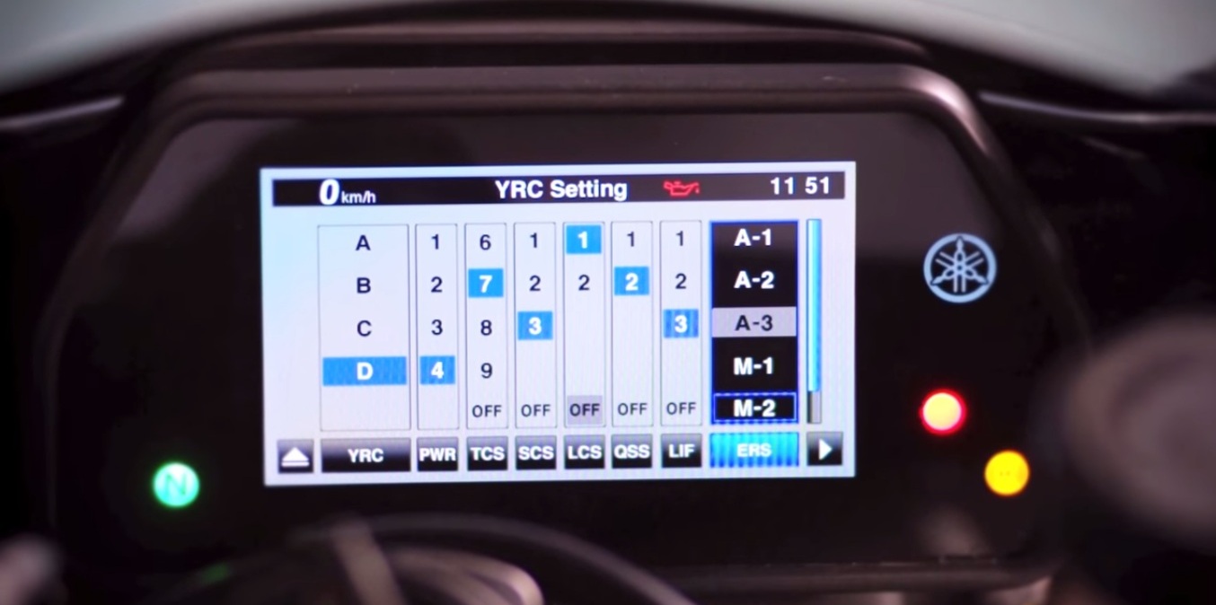 The 2015 Yamaha R1 is loaded to the gills with technology. Packed with MotoGp-inspired electronics, it has been fitted with a launch control system, a quick shift system, lift control, slide control, variable traction control, power modes, a ride control system and a Y-TRAC/Communications control unit. For prospective buyers, or even those who just want to sample the latest in technology, Yamaha’s online meter simulator lets you experience the ability to control advanced electronics on the 2015 R1. Armed with switches and a rotary dial, it lets you toggle between various settings on the fly, while all that information is displayed on a thin-film transistor LCD.