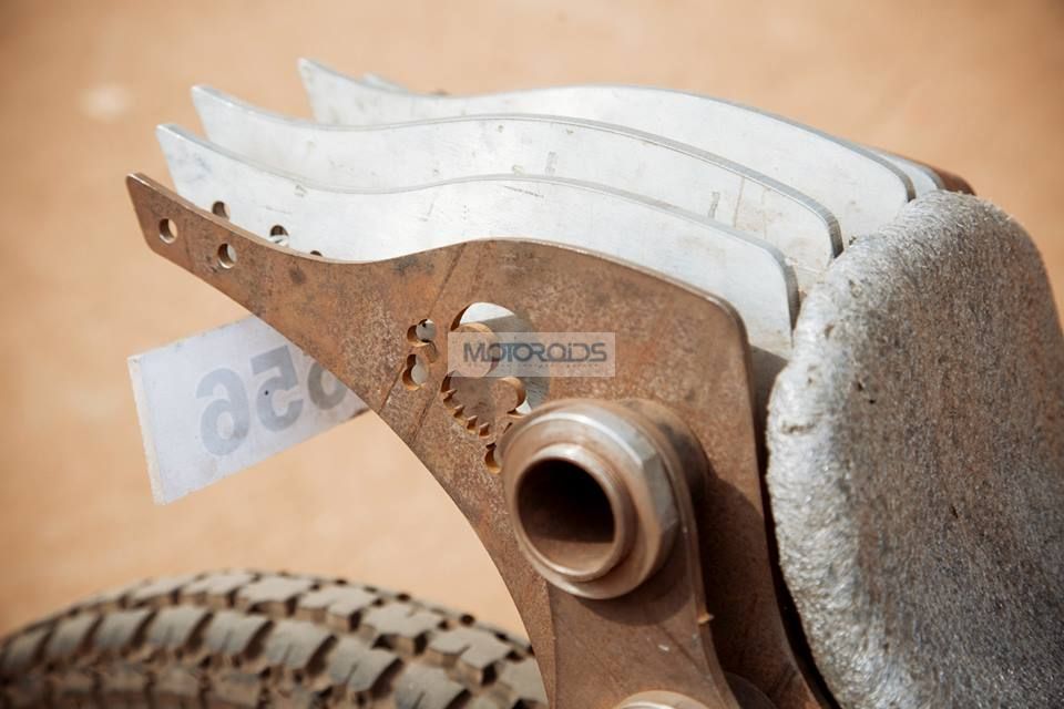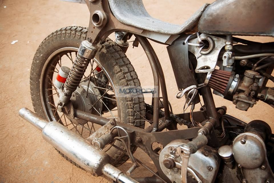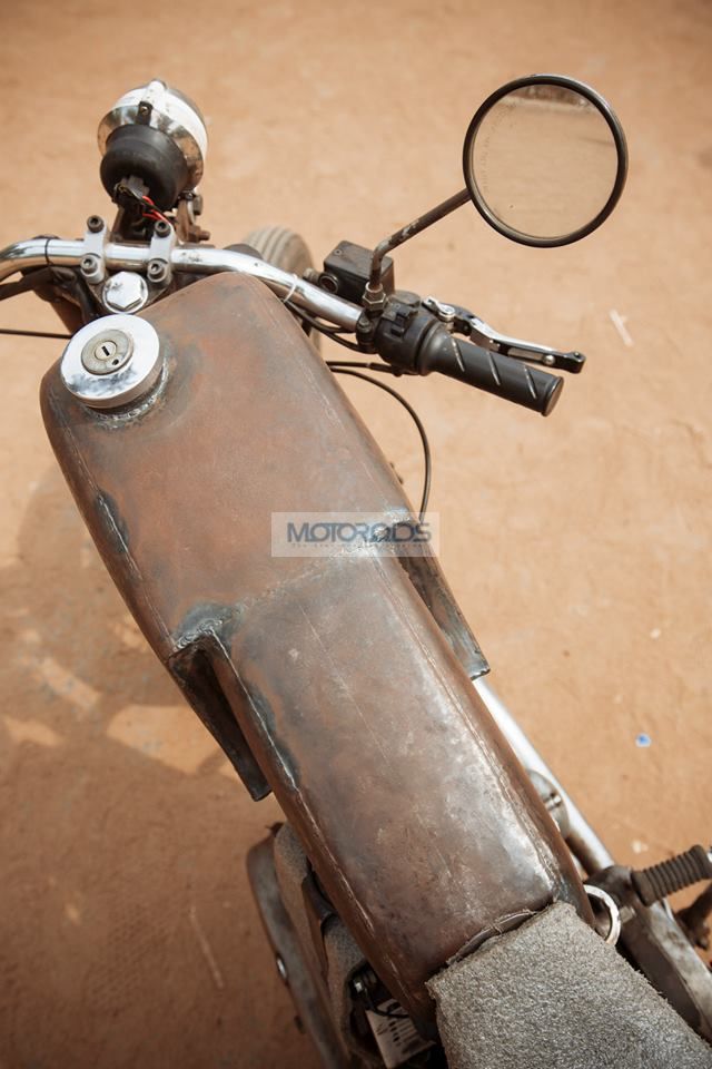 Here’s Ashwin’s build experience: “Spent a day thinking about the design and modelling it on my computer once i finalized the design, first fabricated the tank, kind of a rookie job but turned out pretty nice it took like around 3-4 days to build. then sold off my love (my DSLR) and got the profiles cut with a water jet. then purchased new rims n parts required, chopped off the frame and rebuilt it with my own custom touch, made my own seat, hand bent break and gear levers, even the bars on the chassis were hand bent to perfection, built the front suspension which is one of its kind (bet no one in this country has anything like it), made a headlamp out of a R1 projector and Avenger headlamp reflector, moved the swing arm 3 inches behind for better cornering and all this in just five days without any help. Didn’t really make it to rider mania but managed to catch the eyes of Motoring world magazine and the CEO of Eicher Motors, Sidharth Lal who chased me down in order checkout the bike!!”