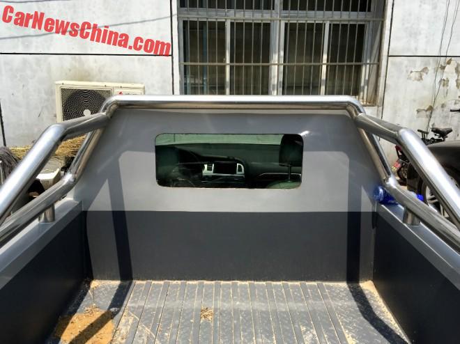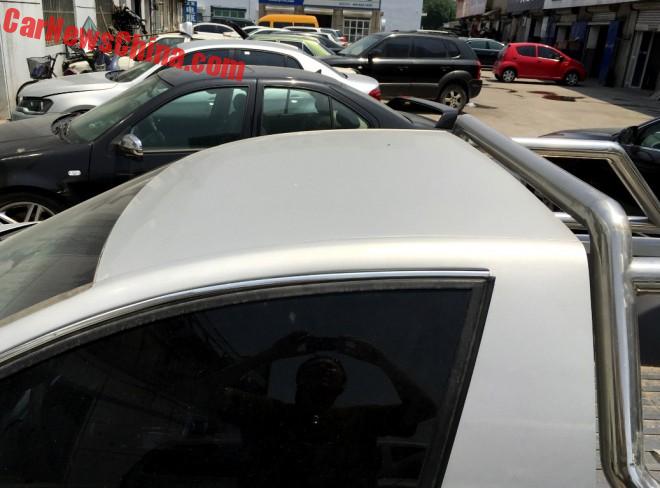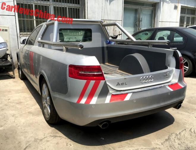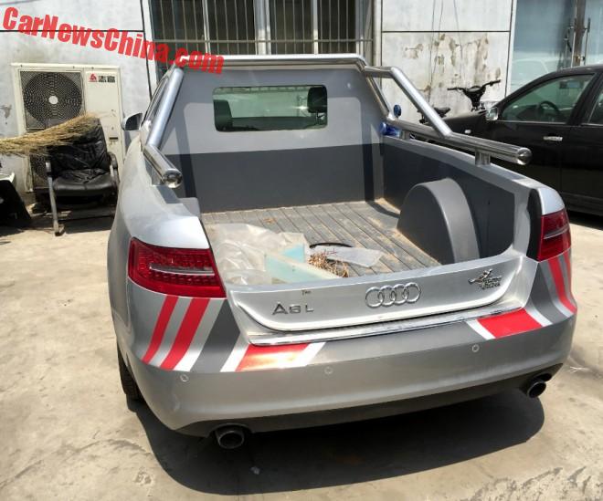 Based on the stretched C6 Audi A6L that’s exclusive to the China, and was manufactured there by the FAW-Volkswagen joint venture from 2006 until 2012, the pick-up is believed to have been converted in 2012. The B-pillar was widened, and the entire glasshouse aft of it have been chopped off. The flat bed has been rather neatly laid out, while half of the tail lamps had to go with the boot lid.