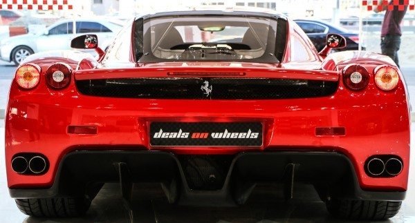 It is extremely rare to find an Enzo up for sale, even at auctions. However, a bright red 2004 Ferrari Enzo (production number 399), has found its way to an exotic cars dealership in Dubai in the United Arab Emirates. Deals on Wheels is the dealership, if you are wondering and want to buy this supercar. The 2004 model has done 12,900 kms and can be yours for just $1.7 million. This Enzo wears a bright red paint, or as Ferrari calls the colour, Rosso Corsa. It comes with red interior leather, trims and stitching. Oh, you also get loads of beautiful naked carbon-fibre scattered all over the cabin.