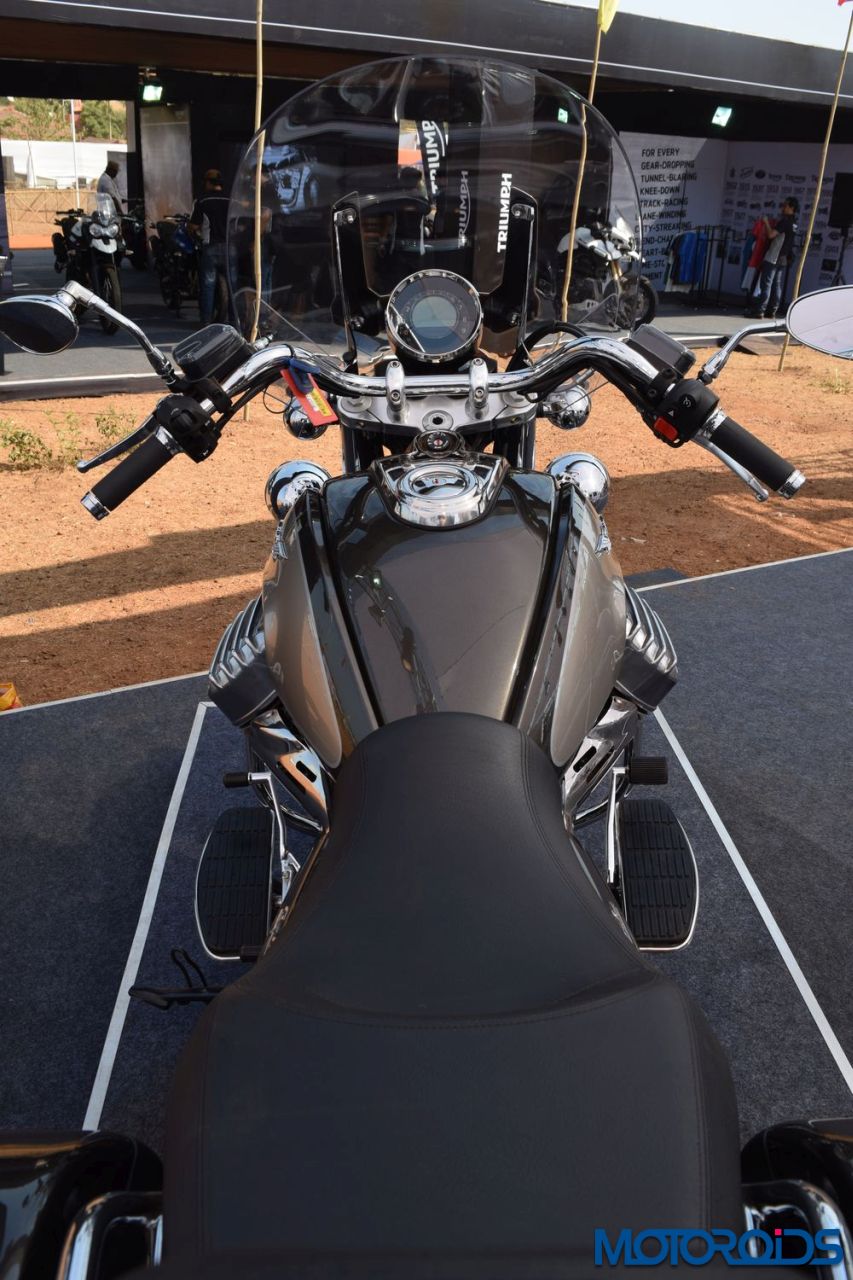 View of the rider astride a Chieftain, simple and uncluttered instrumentation